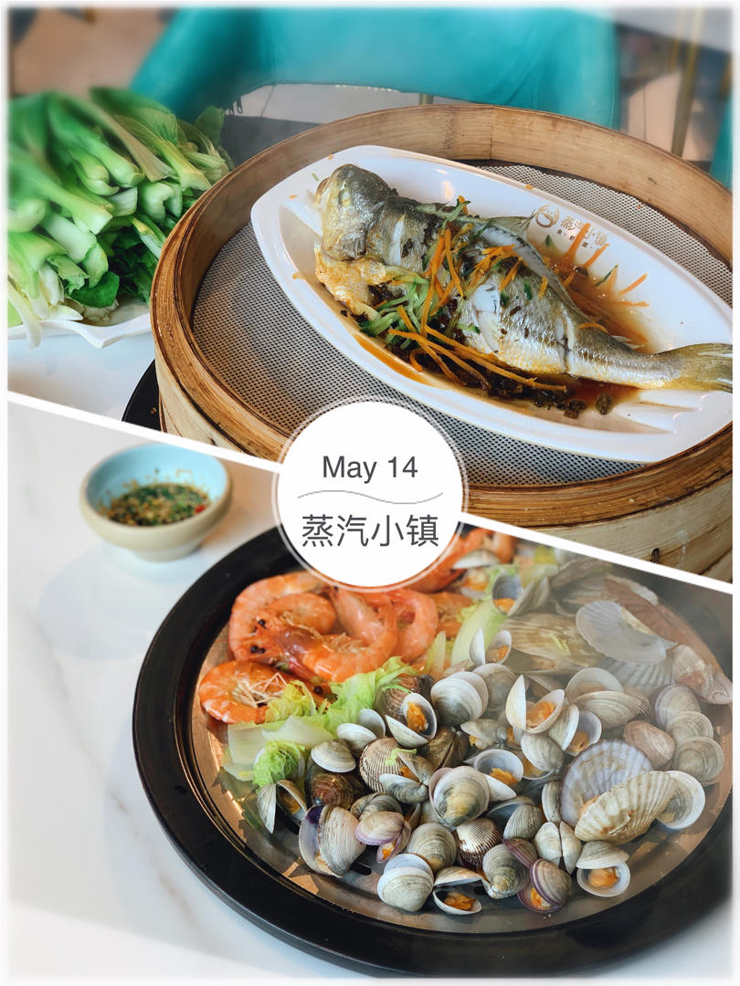 【蒸汽小镇】一个人吃双人餐还没饱,蒸饺很小难吃,黄花鱼扇贝生蚝味道都不错。