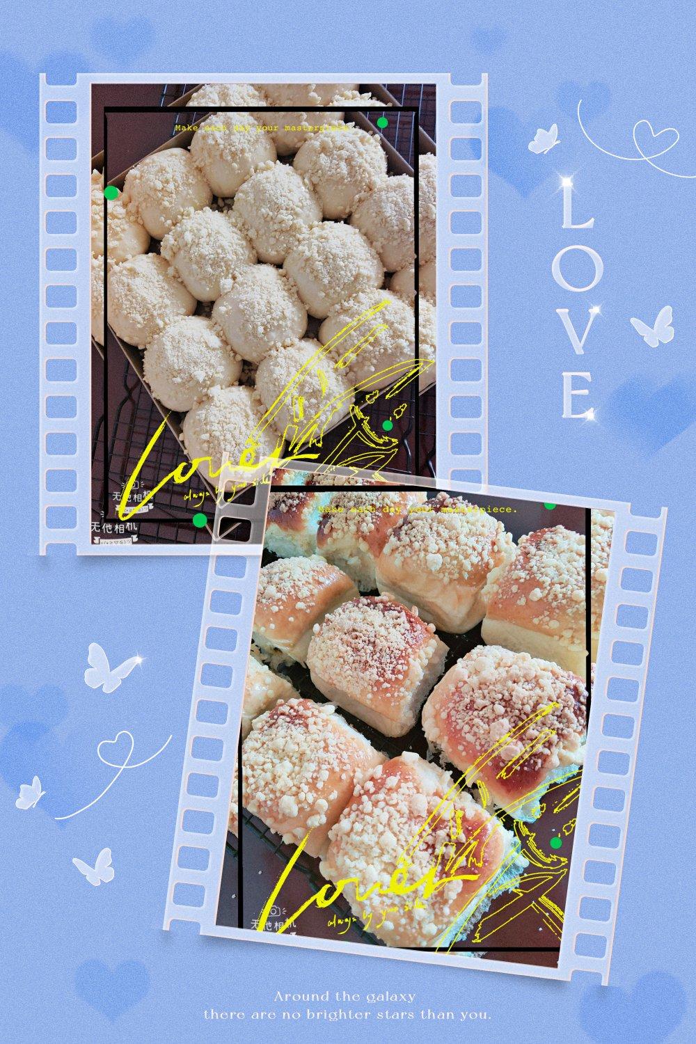 紫米馅的酥粒面包#
