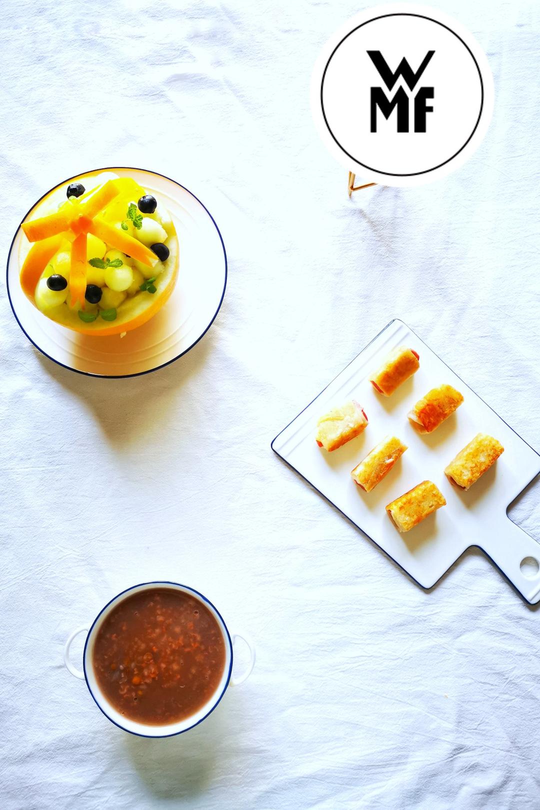 绿豆粥,午餐肉卷,甜瓜#午餐•2021...