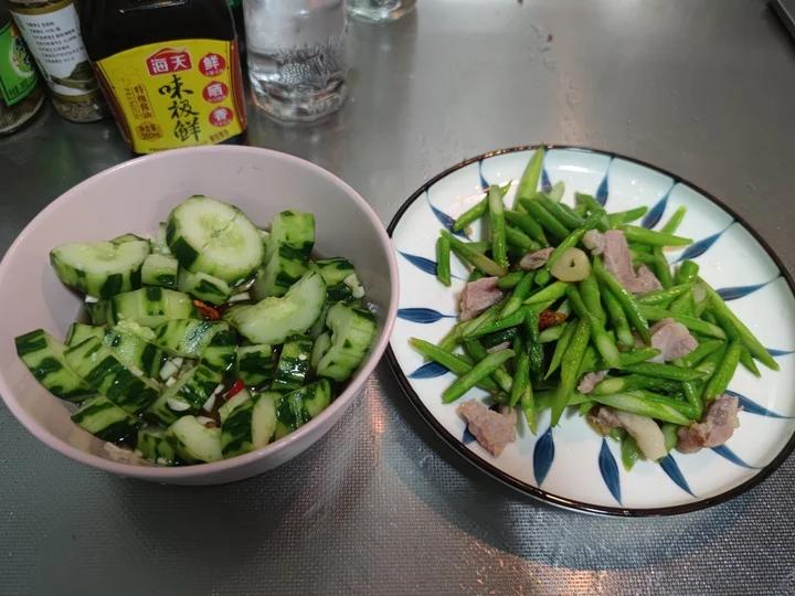 一人食:芦笋炒腊肉&刀拍黄瓜