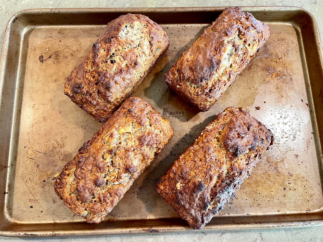 我做过的最好吃的banana bread,烤过的香蕉果肉很香甜。配方见图三,糖量减至100g,油量最多可以减到1/4cu...