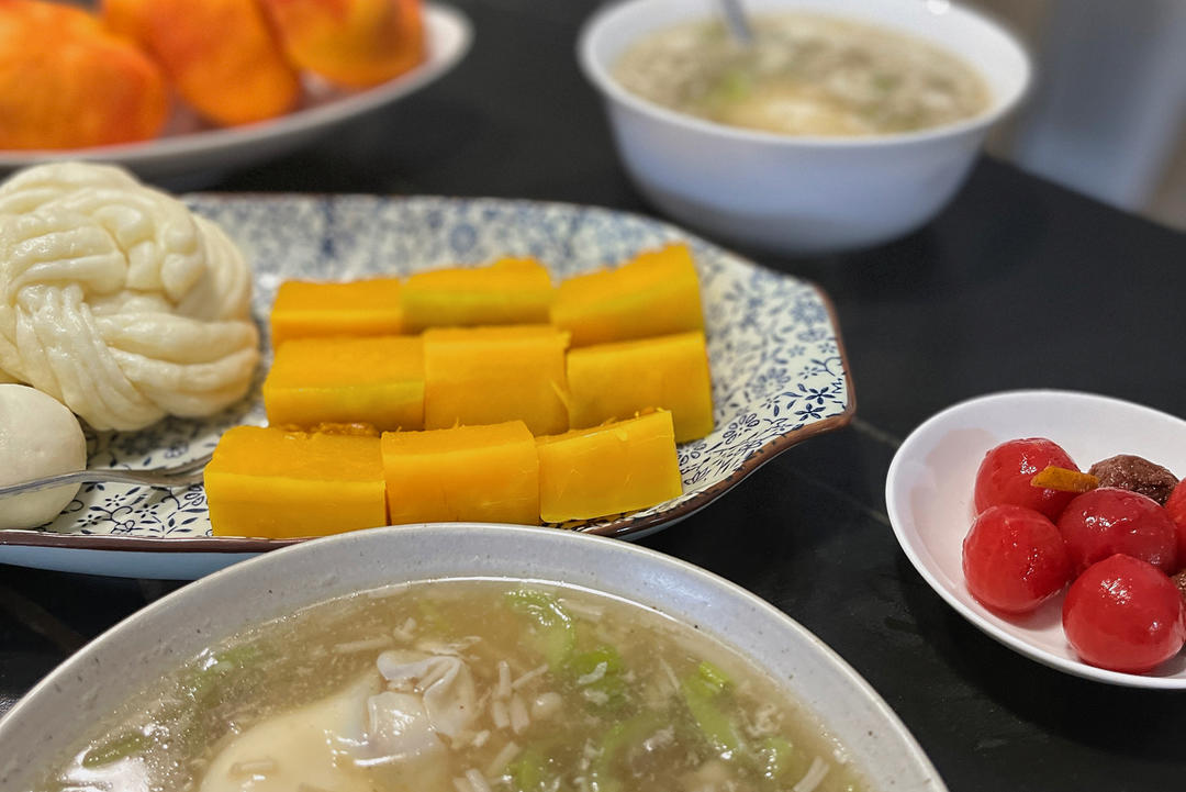 今日早餐:丝瓜汤|蒸南瓜与花卷