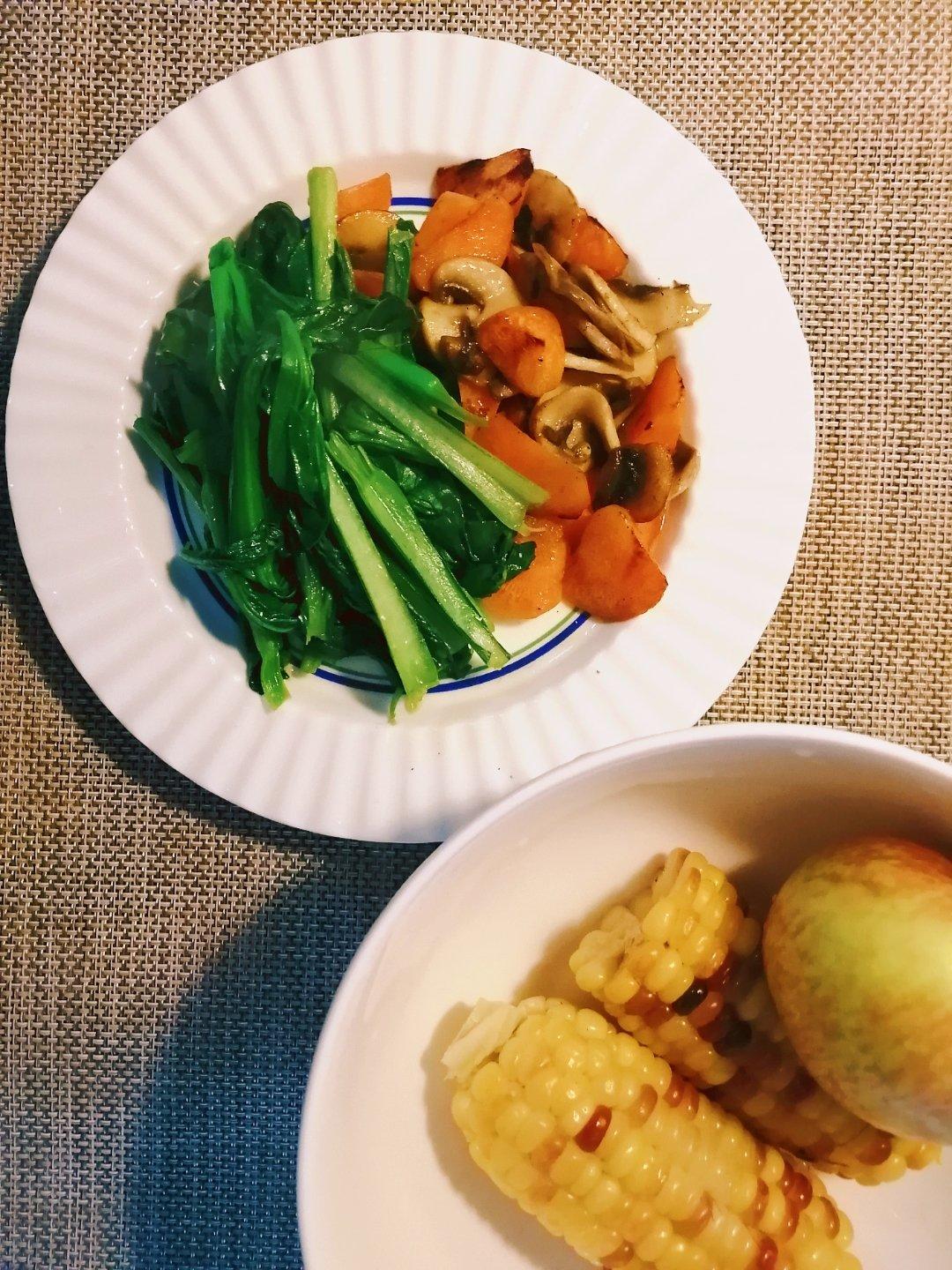 蔬果:菜心、胡萝卜,口蘑、苹果