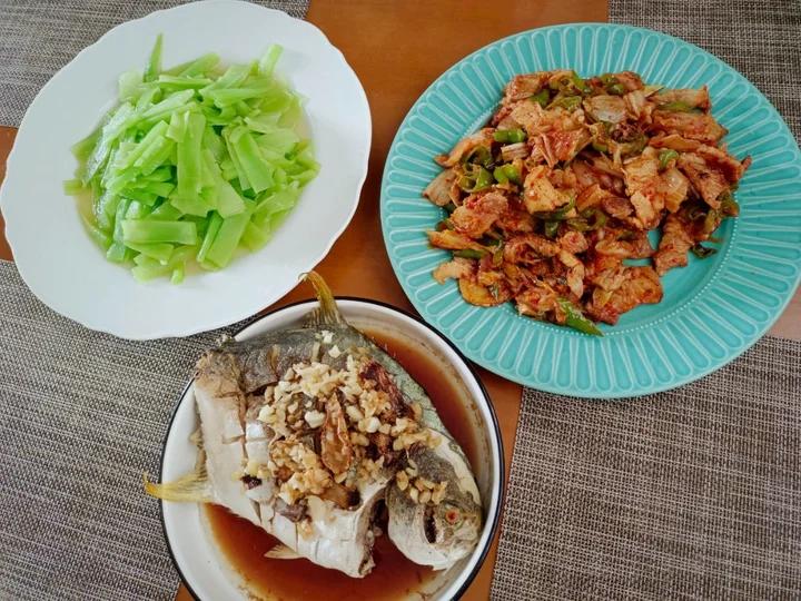 【蒜蓉金昌鱼×清炒莴笋×泡菜五花肉】