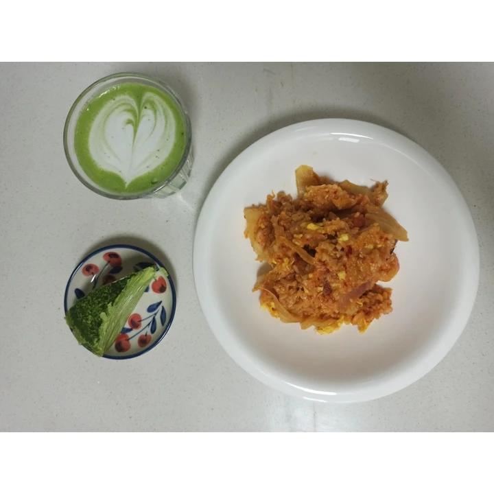 鸡蛋打完之后加酱油、油、两滴美极。热锅加多一点油,把鸡蛋倒进去之后不动,等一...