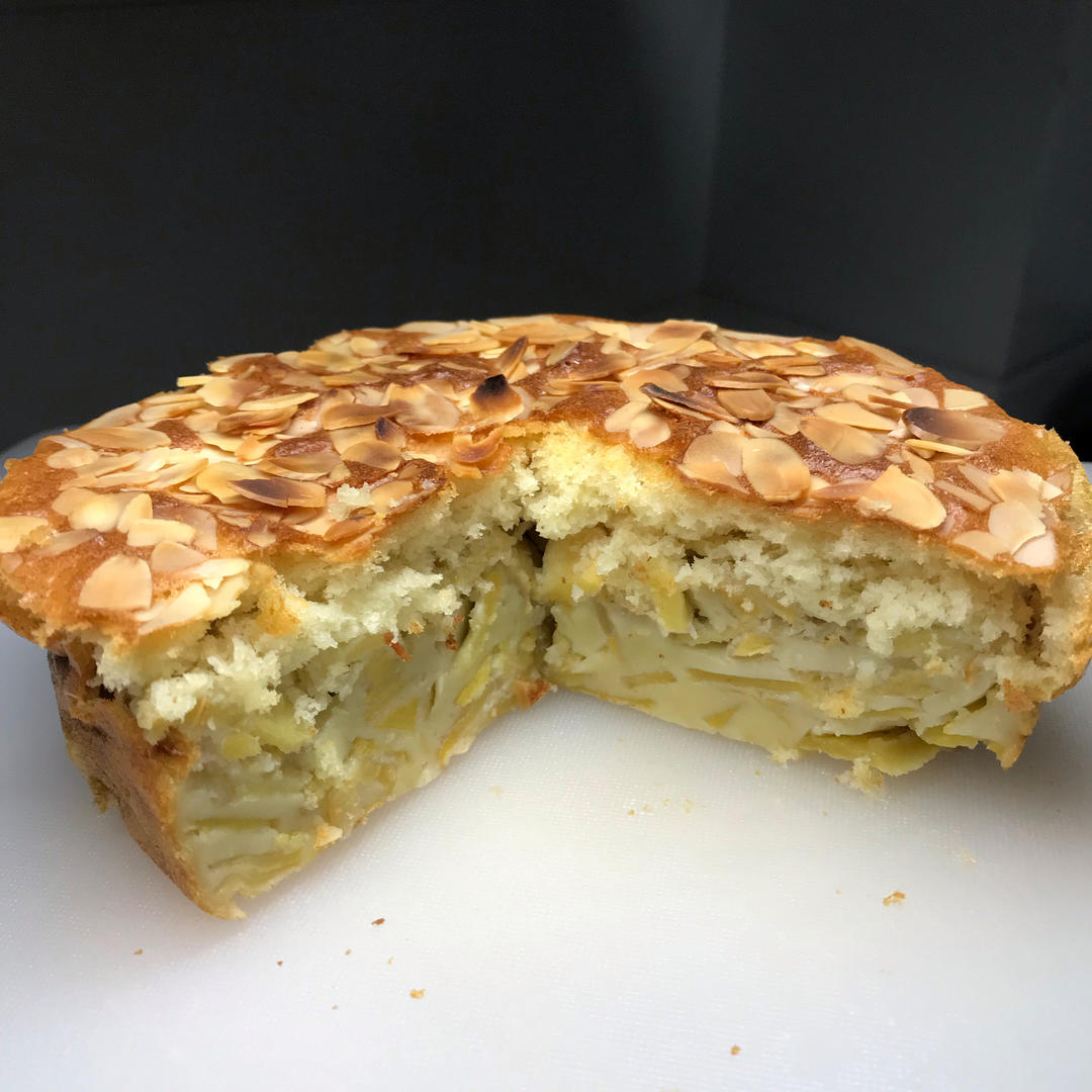 怎么说呢,口感有些奇怪,味道一般吧,不会再做,因为不好吃。你看结构:从下往上,有苹果的部分有点湿湿粘粘固态状,顶部就是蛋...