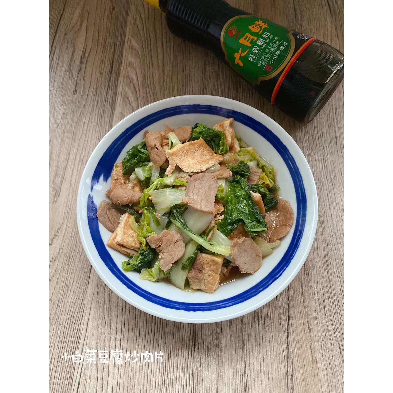六月鲜特级酱油,保留了酱油的本味,精进酿造工艺,让咸味变淡,鲜味提升,酱香更浓郁!小白菜豆腐炒肉片,加...