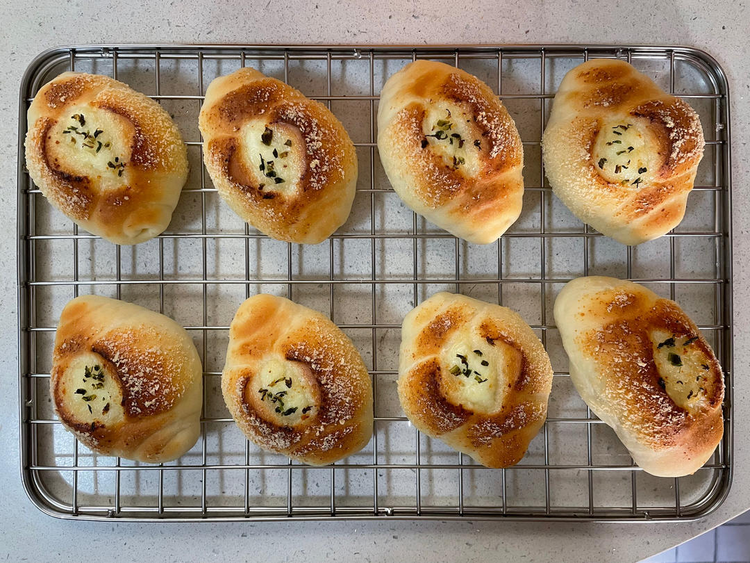 没有葱粉用的葱碎,200°/190°中下层15分钟,剪大口涨得更圆润哦😜