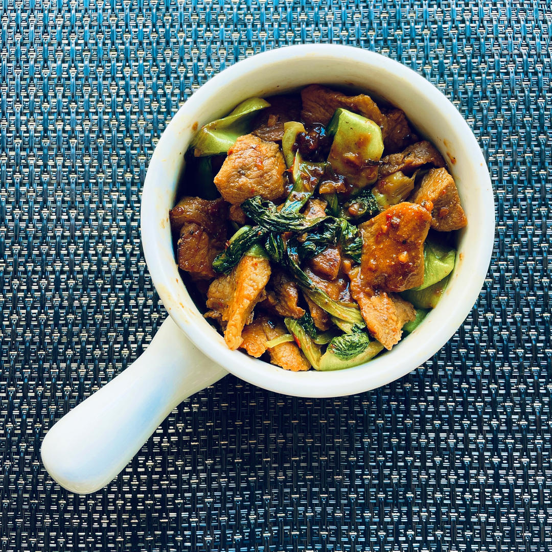 狂暴的大片肉片炒青菜