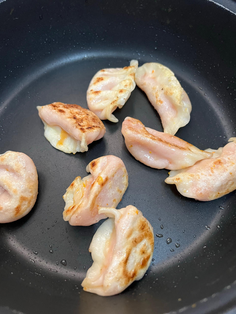 黄油煎饺。水煮熟饺子,黄油煎,好处在稳定不变成反式脂肪酸。植物油煎倒不健康。