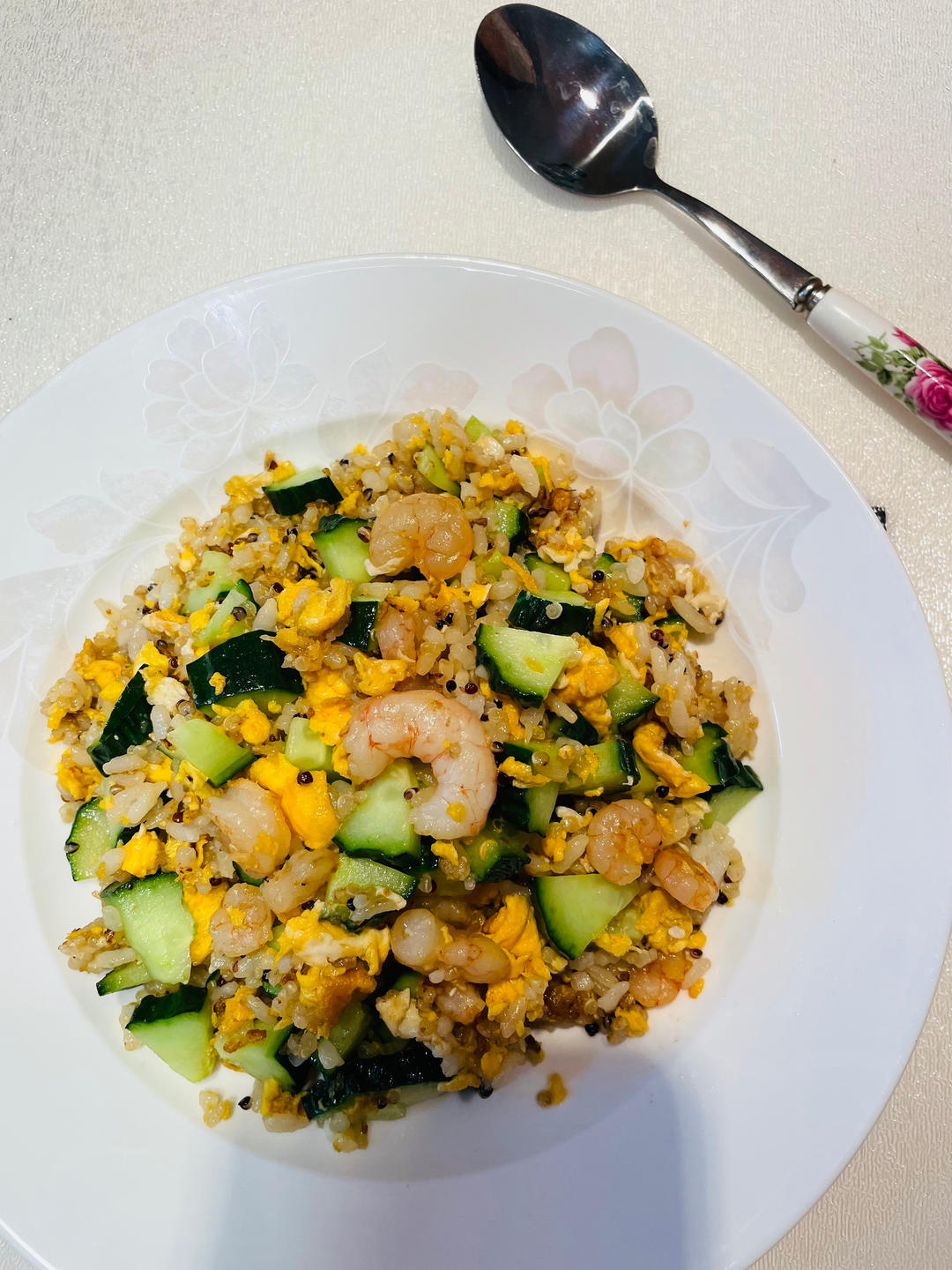 🥣虾仁🍤鸡蛋炒饭、酱牛肉、啃黄瓜🥒,亲爱的@