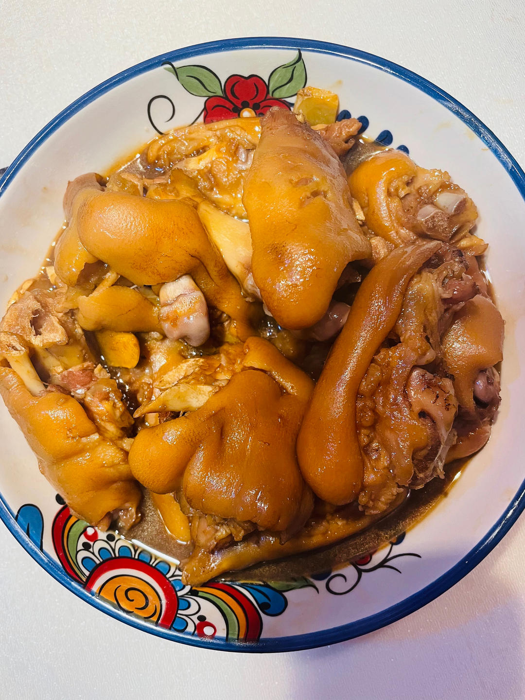 🥣duang、duang、duang的炖猪蹄来啦、虾仁🍤炒鸡蛋、继续烤红薯,姑娘做的巴斯克蛋糕🍰,锡纸盖晚了有点糊,她说...