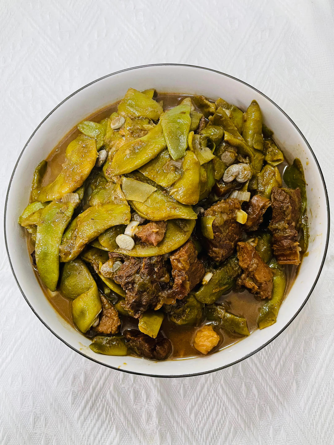 🥣牛肉炖豆角、拍黄瓜🥒,又煮了锅酱牛肉当备餐