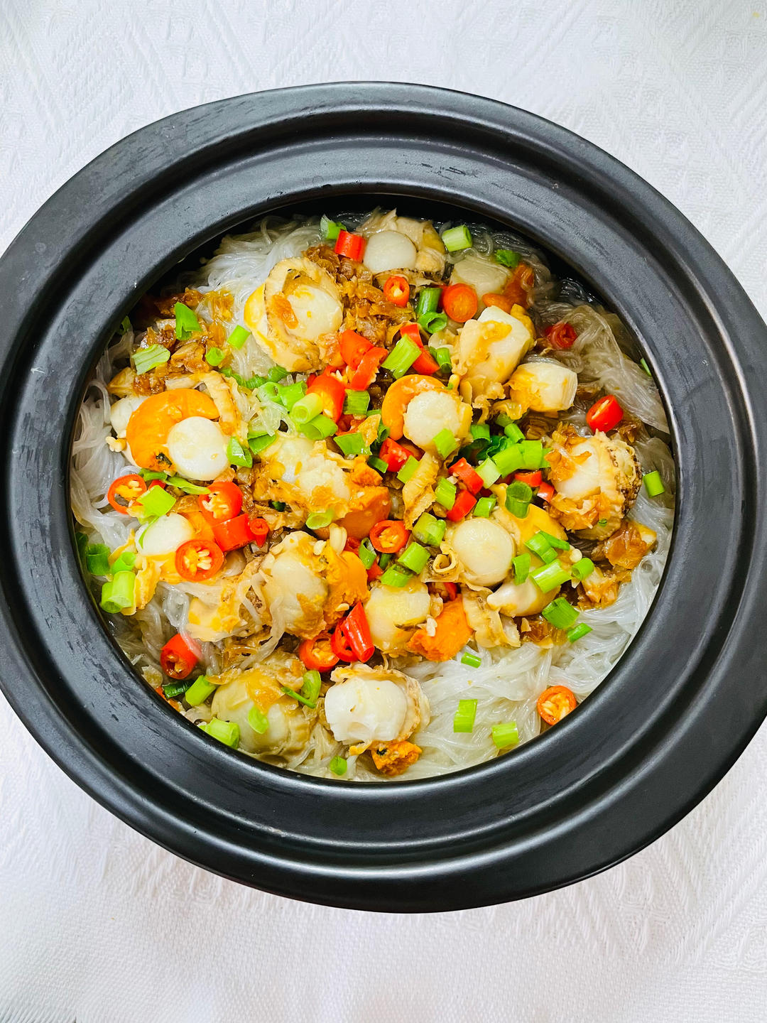 🥣扇贝金针菇粉丝煲、牛肉炖萝卜、西红柿炒鸡蛋、烤苕皮