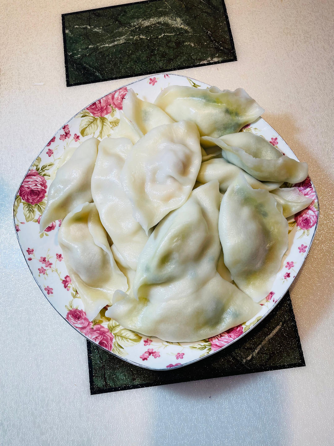 晚餐🥣喜家德饺子🥟、蒜苗炒鸡蛋、凉拌洋葱🧅木耳黄瓜🥒,以后这个菜要常吃了😊