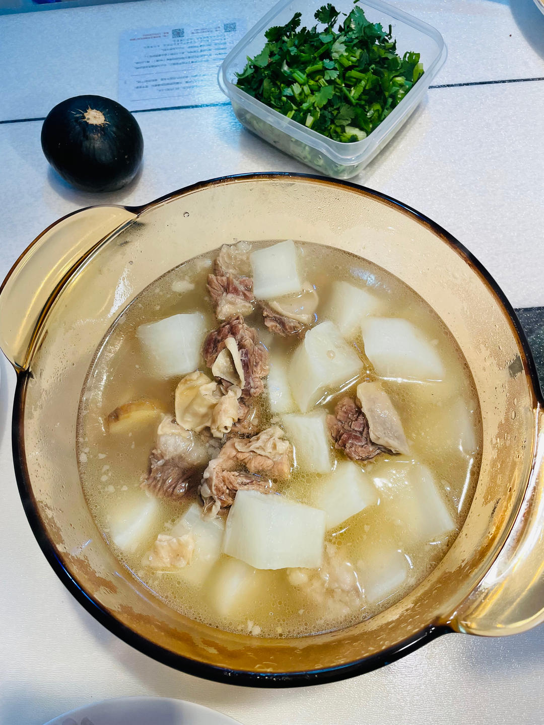 晚餐🥣牛腩炖萝卜、蒜蓉茼蒿、辣拌金针菇,后两菜都是前天吃火锅剩的菜,吃顿火锅打扫好几顿青菜,订了一袋贝贝南瓜,太小了,自...