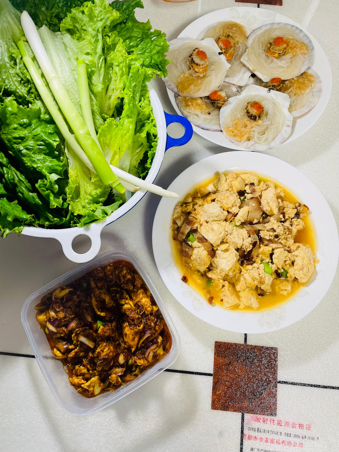 晚餐🥣生菜饭包、腊肉炒豆腐、扇贝蒸粉丝,本来不想吃米饭,结果一吃饭包又停不下来了😋