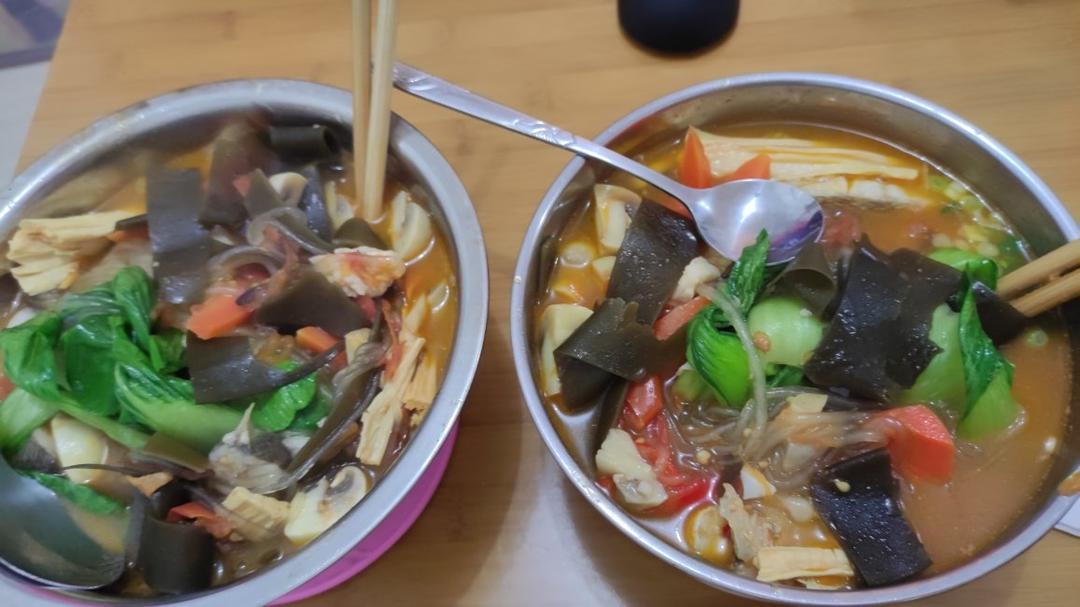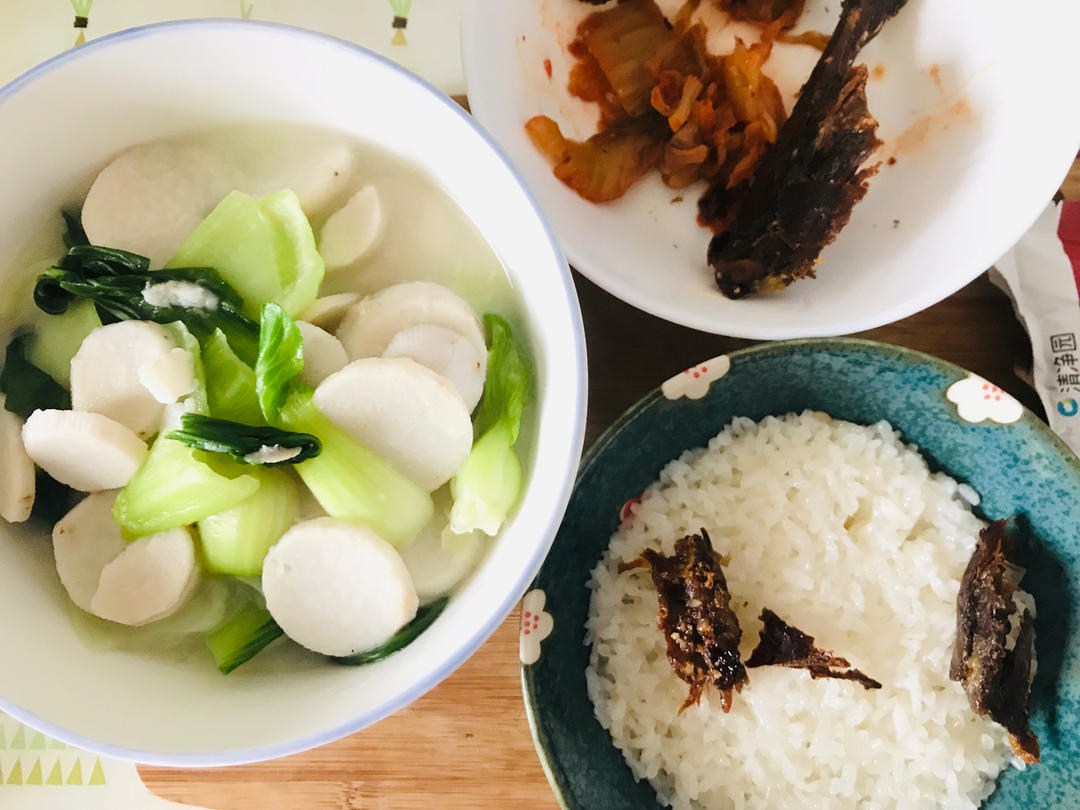 【芋头青菜汤+泡菜+酱板鸭】昨天吃了烤鸭大餐和其他七七八八很多东西感觉还没消化,加上今天早餐吃的也多,所以中午简单吃点。...
