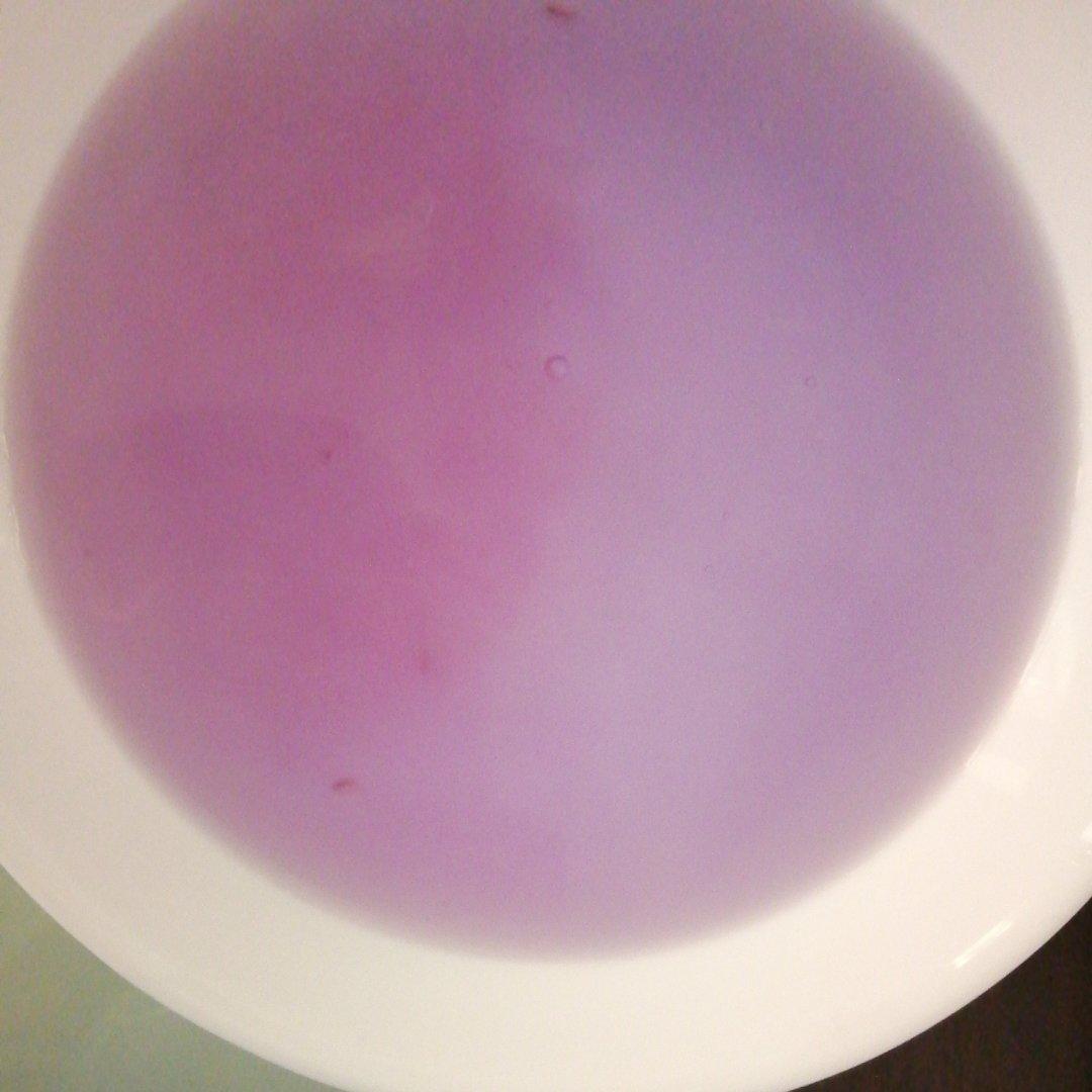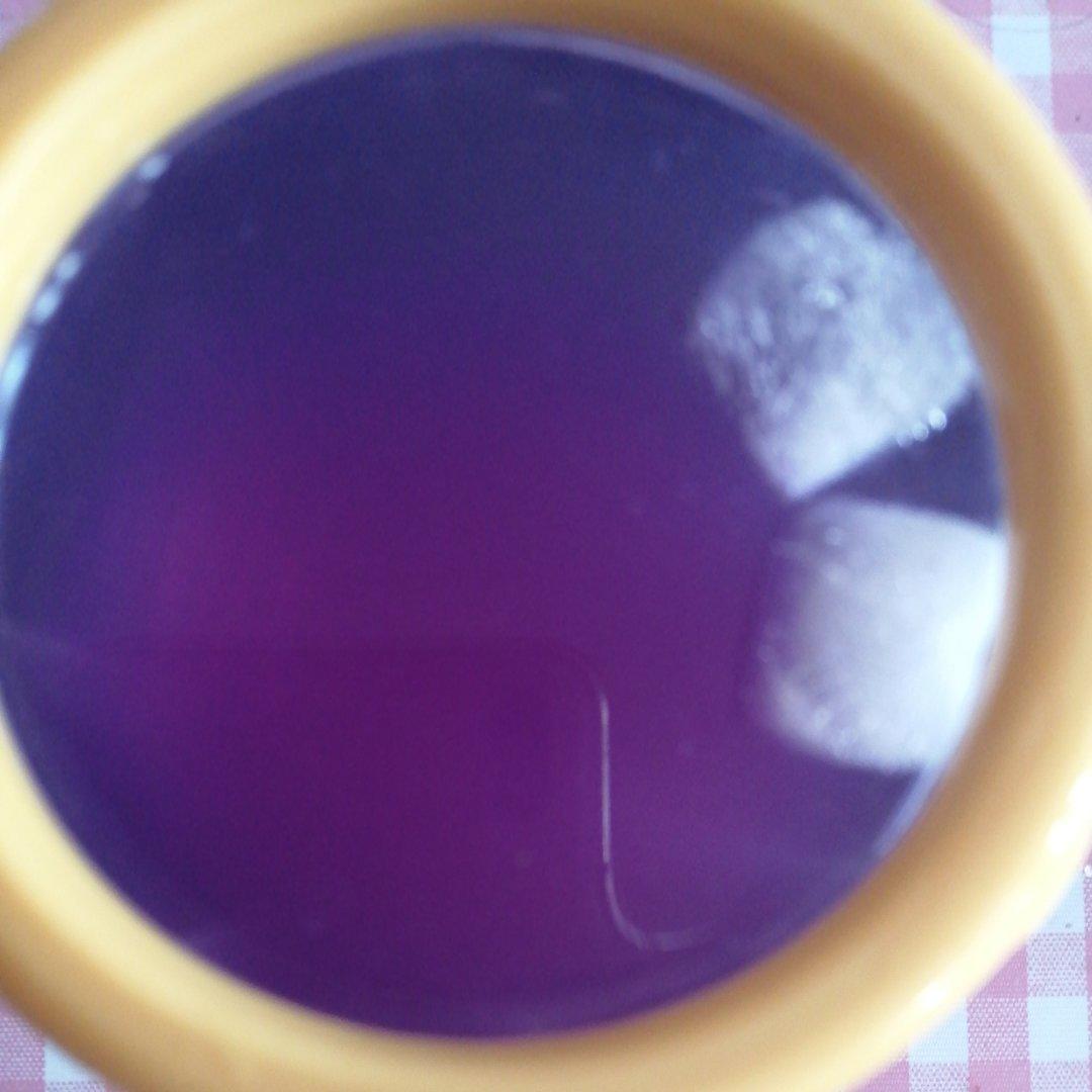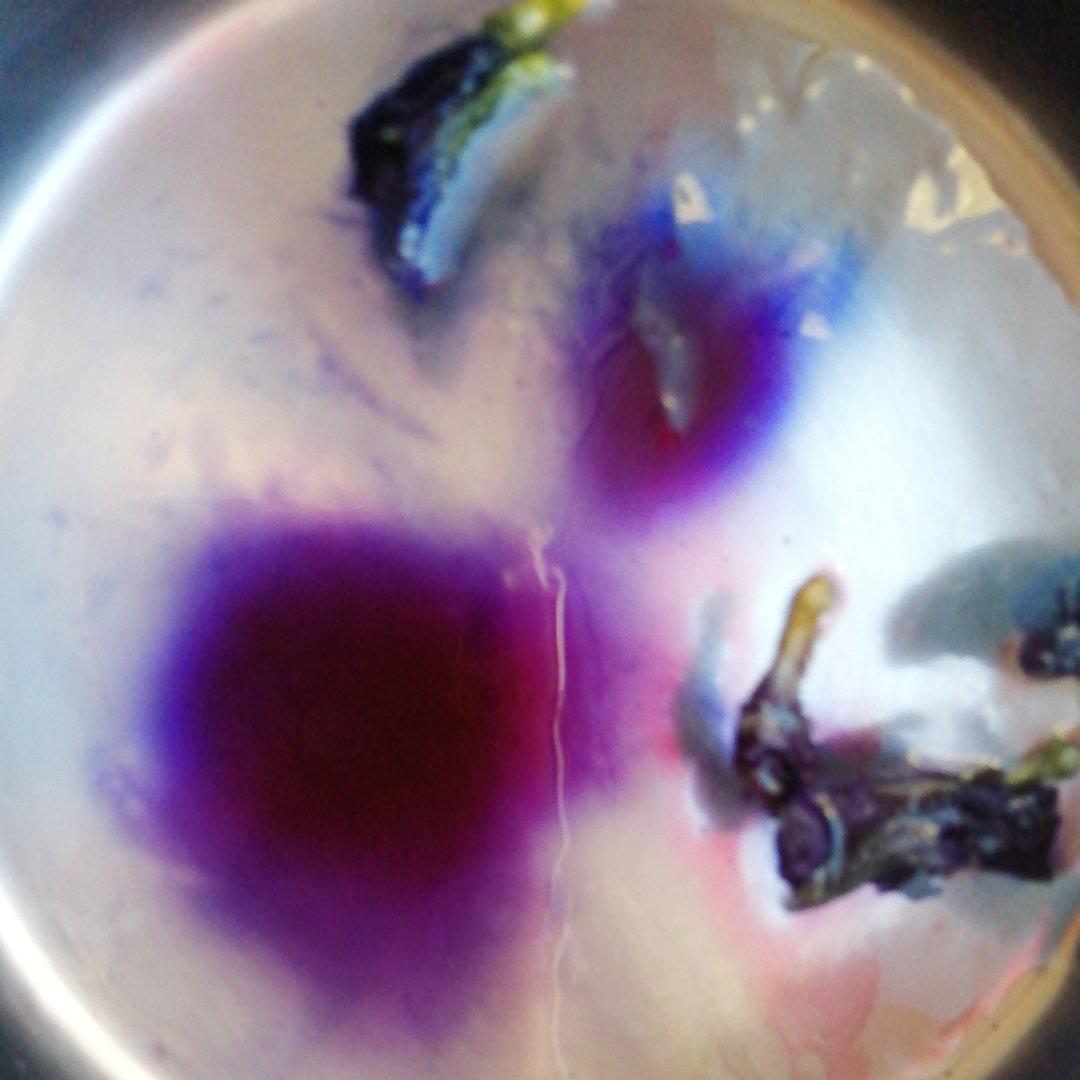 天然的染色剂,蝶豆花。不过刚沏的水很热,但愿这两个冰块能活下来吧..........