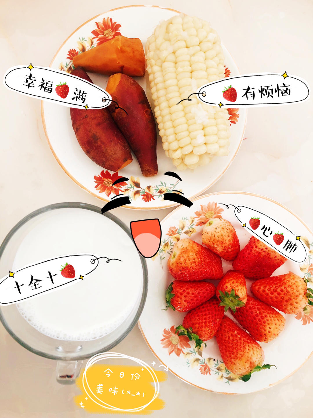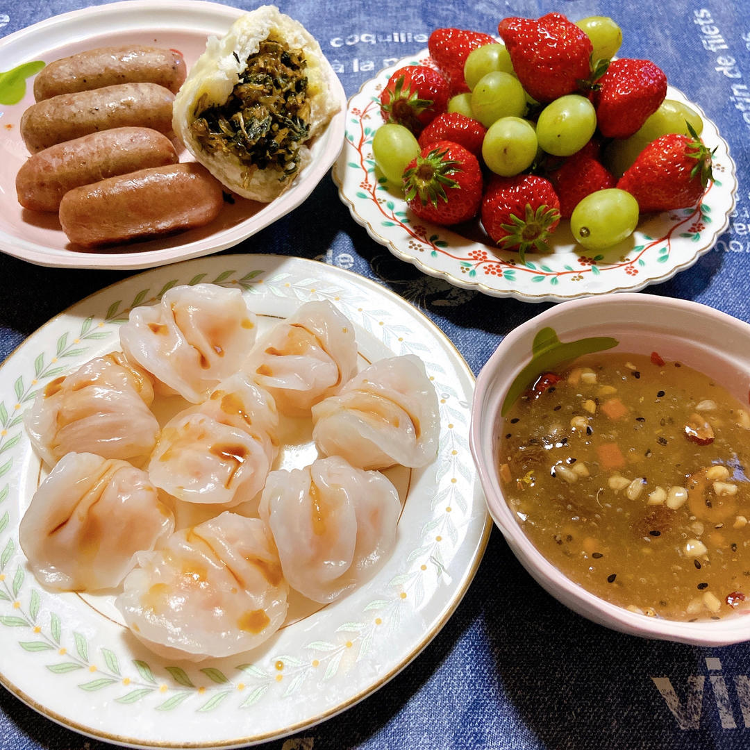 水晶樱桃饺+煮鸡蛋+台芒+巧克力牛奶