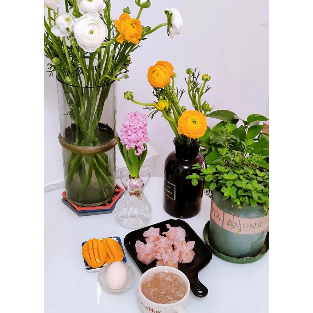 在洋牡丹,水培风信子,薄荷的陪伴下