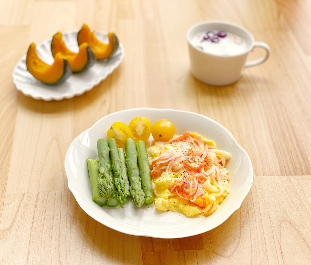 蒸贝贝南瓜|蟹柳鸡蛋|芦笋