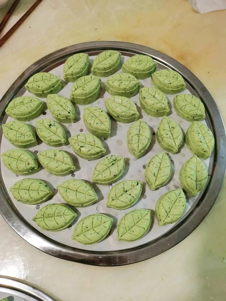 青团:糯米粉600 ,粘米粉200 糖120。油30g。清明花泥:760g。水开后蒸10-12分钟。试来试去还是喜欢糯米...
