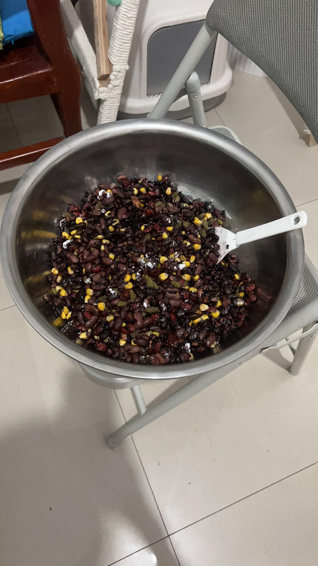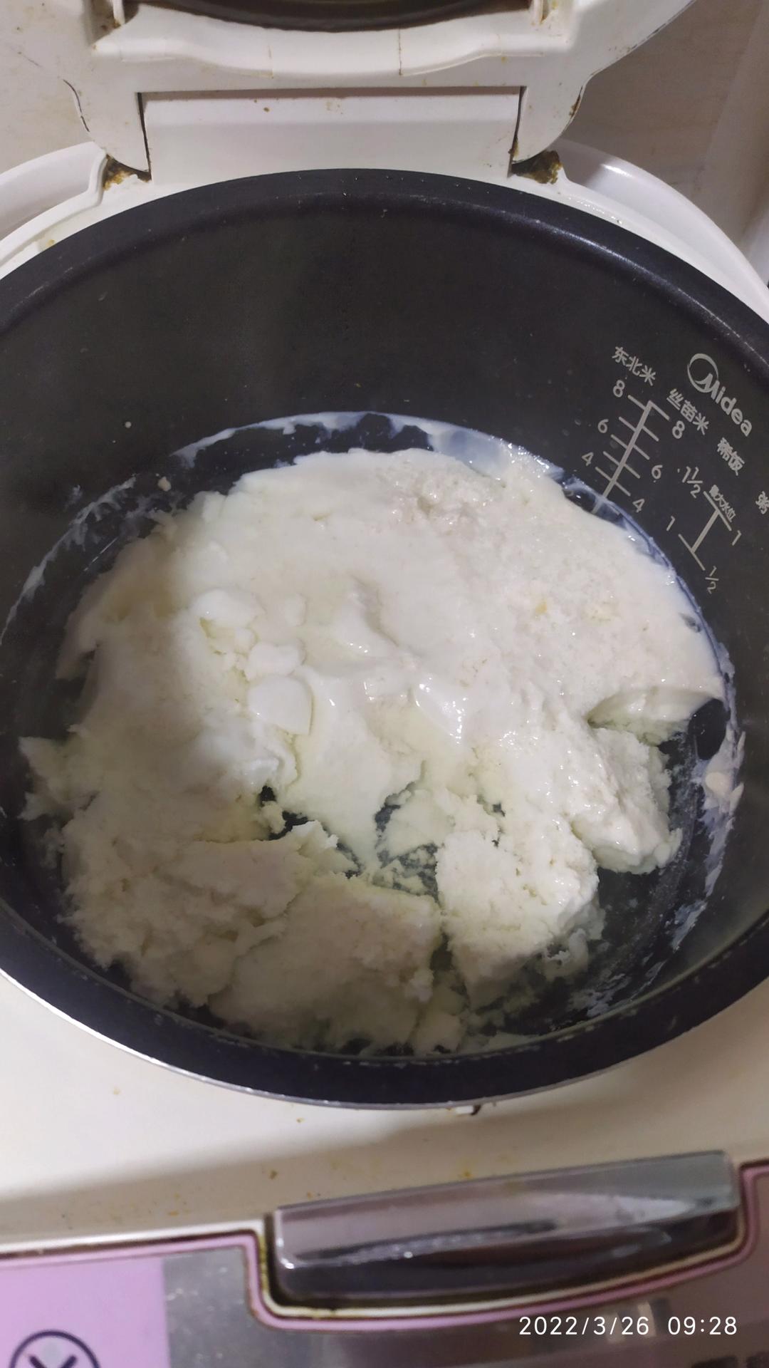 还是有点稀了,大概打浆的过程撒了很多液体。然后3g又全部加进去了。