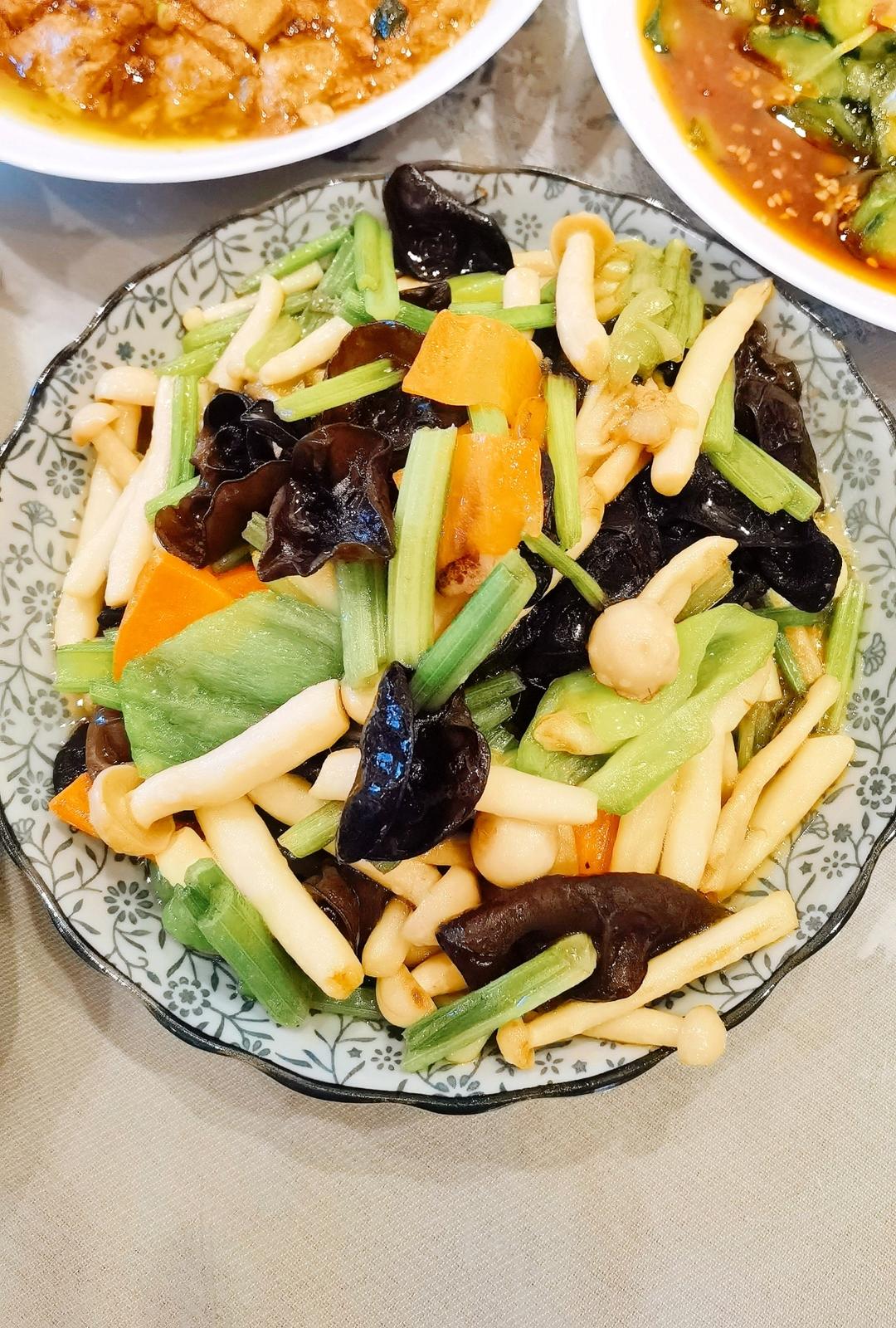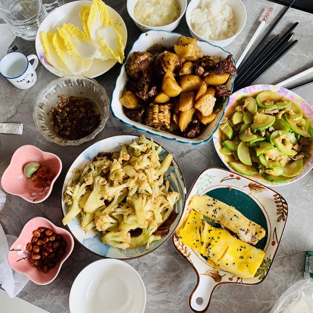 酱骨头,芸豆炖土豆,尖椒炒青椒