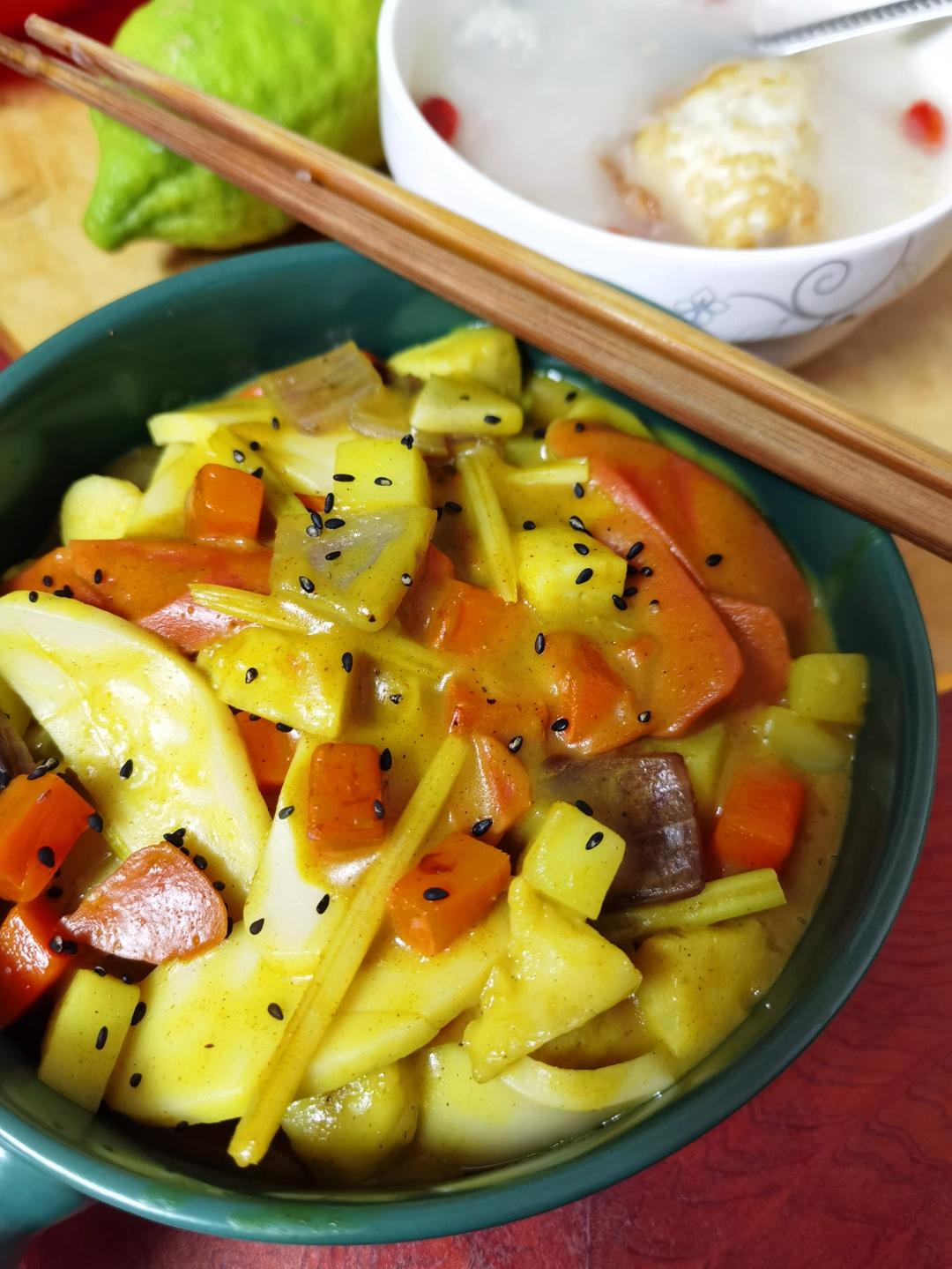 今天是咖喱炒年糕,嗯~味道还是不错的😏