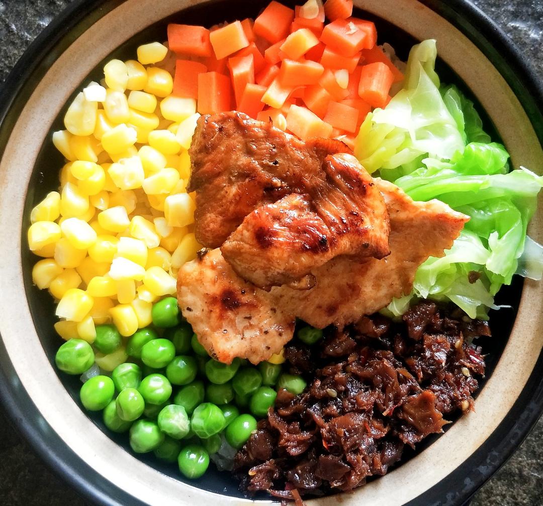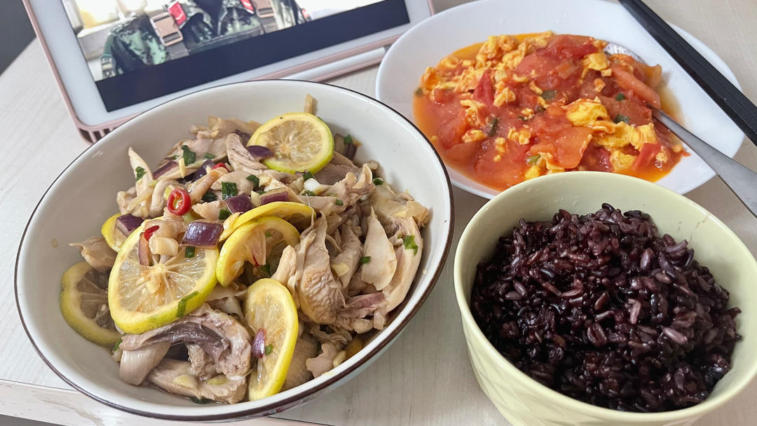 鸡胸香菇酱杂蔬拌饭、夏式葱油拌面