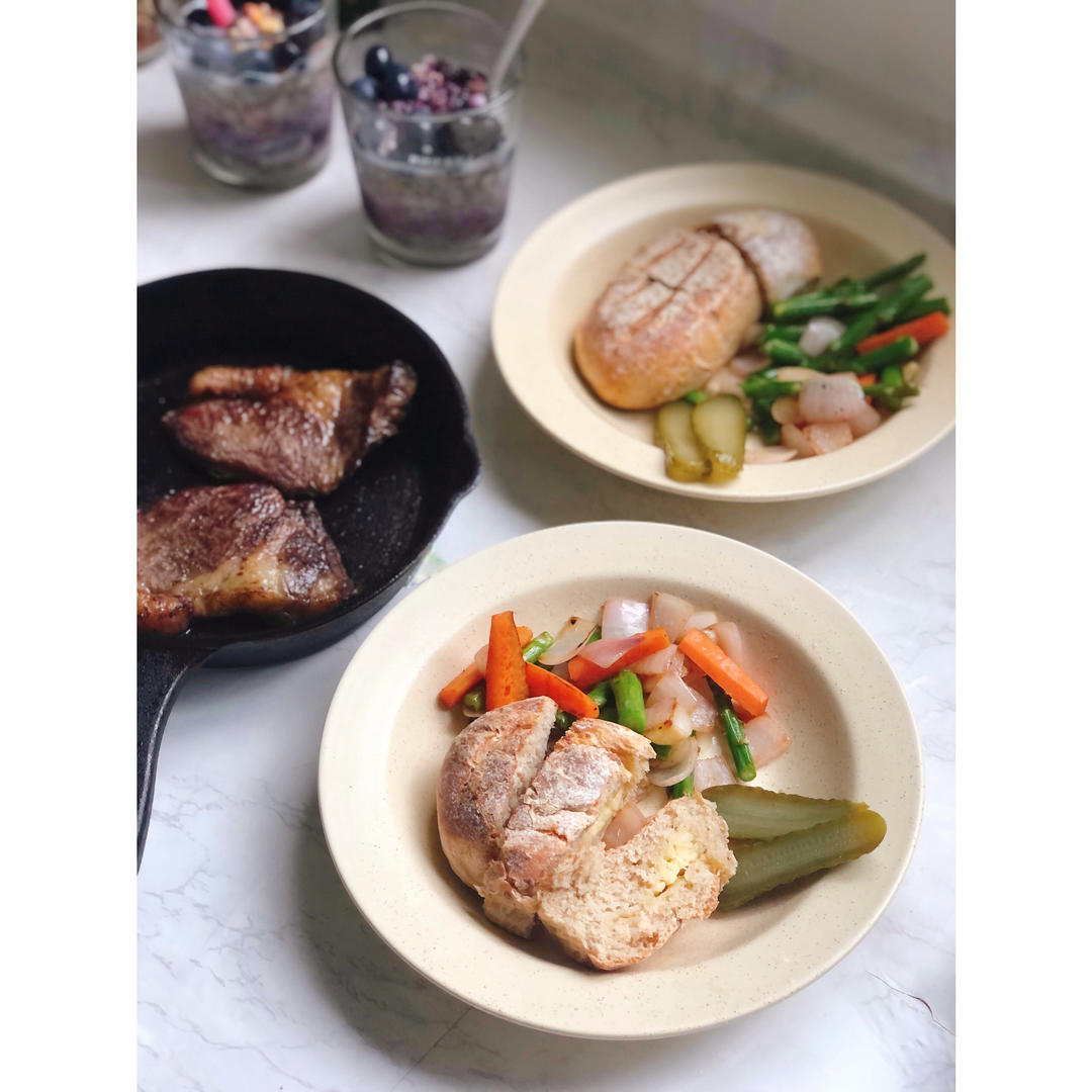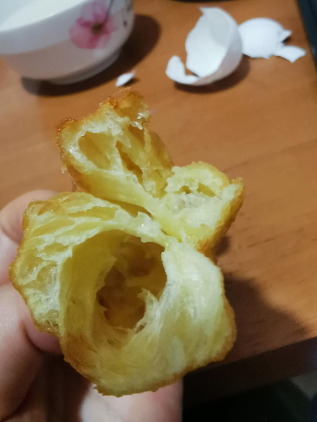 金龙鱼高筋面粉,60度温水和面,醒了一个多小时,此时面有较好延展性,做了5个。改进:下次可以多放点盐 略淡了。还有一点干...