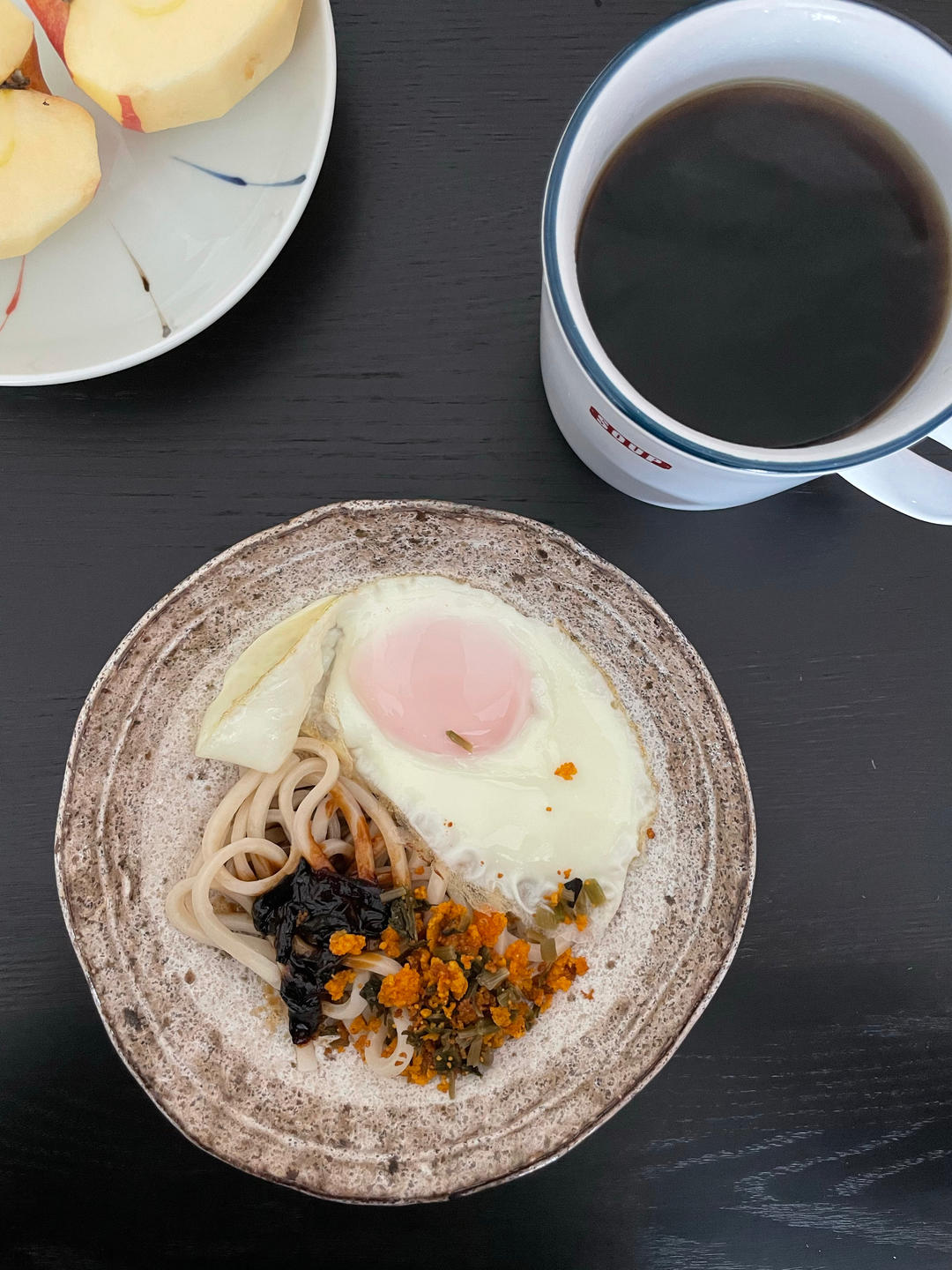葱油拌面、荷包蛋、雪菜鱼籽