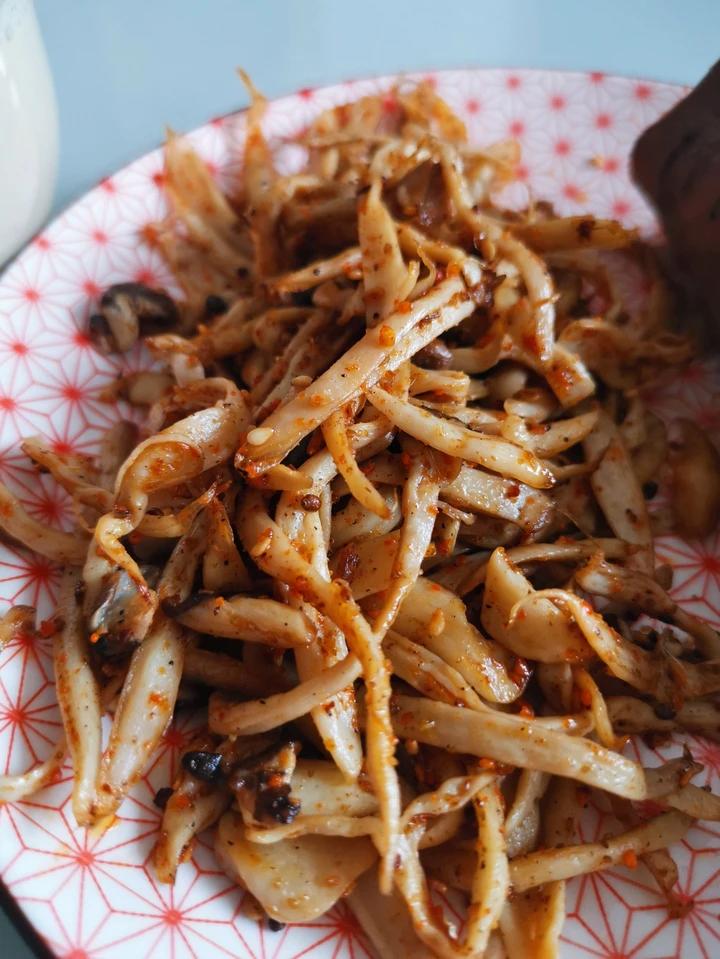 2.茭白下锅翻炒两下盛起来