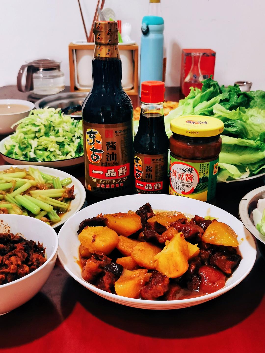 酱香三汁焖锅,二刷了,因为好吃😋而且是全程视频指导孩子们在家做的!哈哈掌勺人虽然因为封闭值守不在家,但是有了东古一品鲜酱...