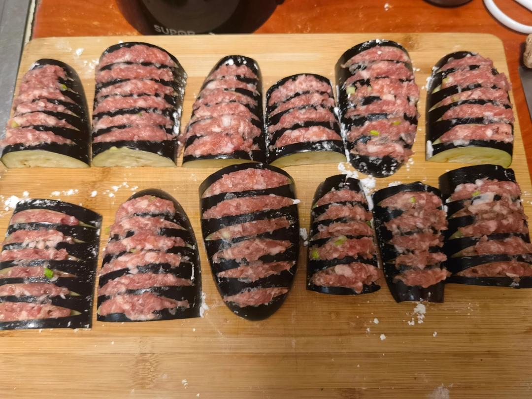 我买的茄子太大了哈哈,两个茄子锅都快放不下了....填肉馅的时候我太仔细了花了很长时间,不过味道不错!#晚餐•2022年...