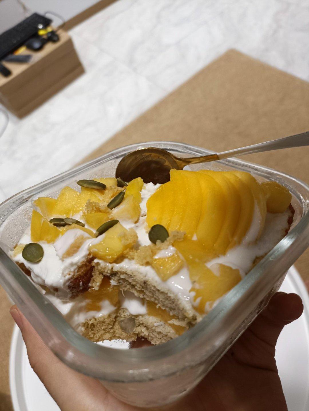 切片做了酸奶黄桃 生日蛋糕,很好吃,椰子味很浓,我另外加了南瓜子,糖是40g