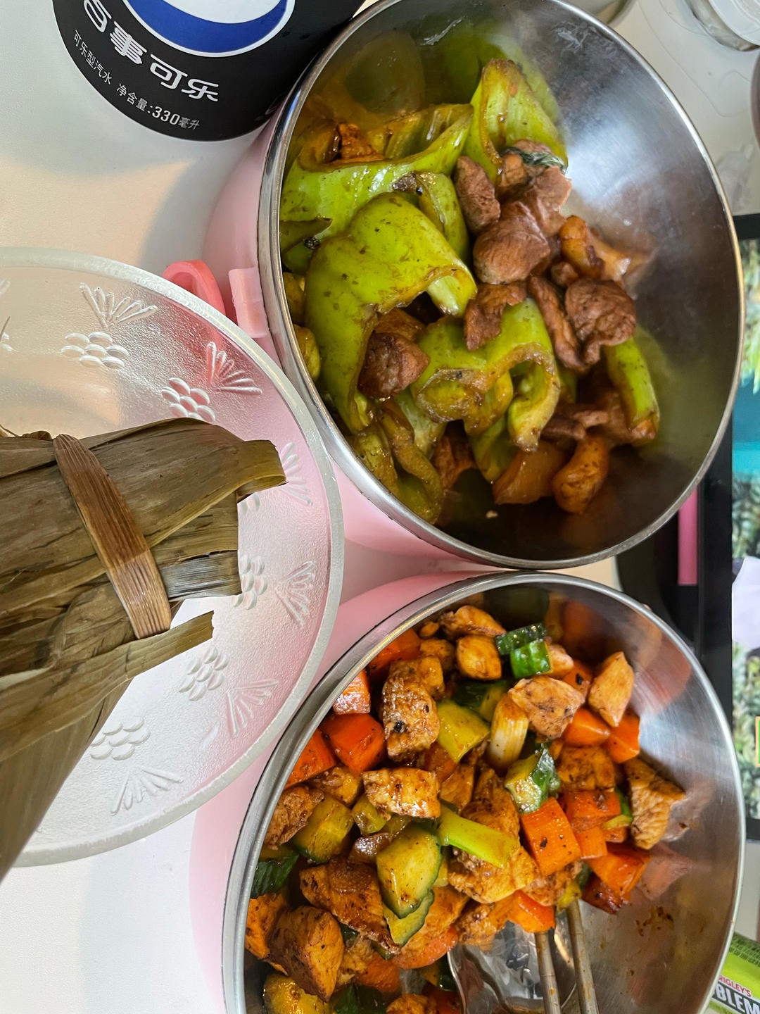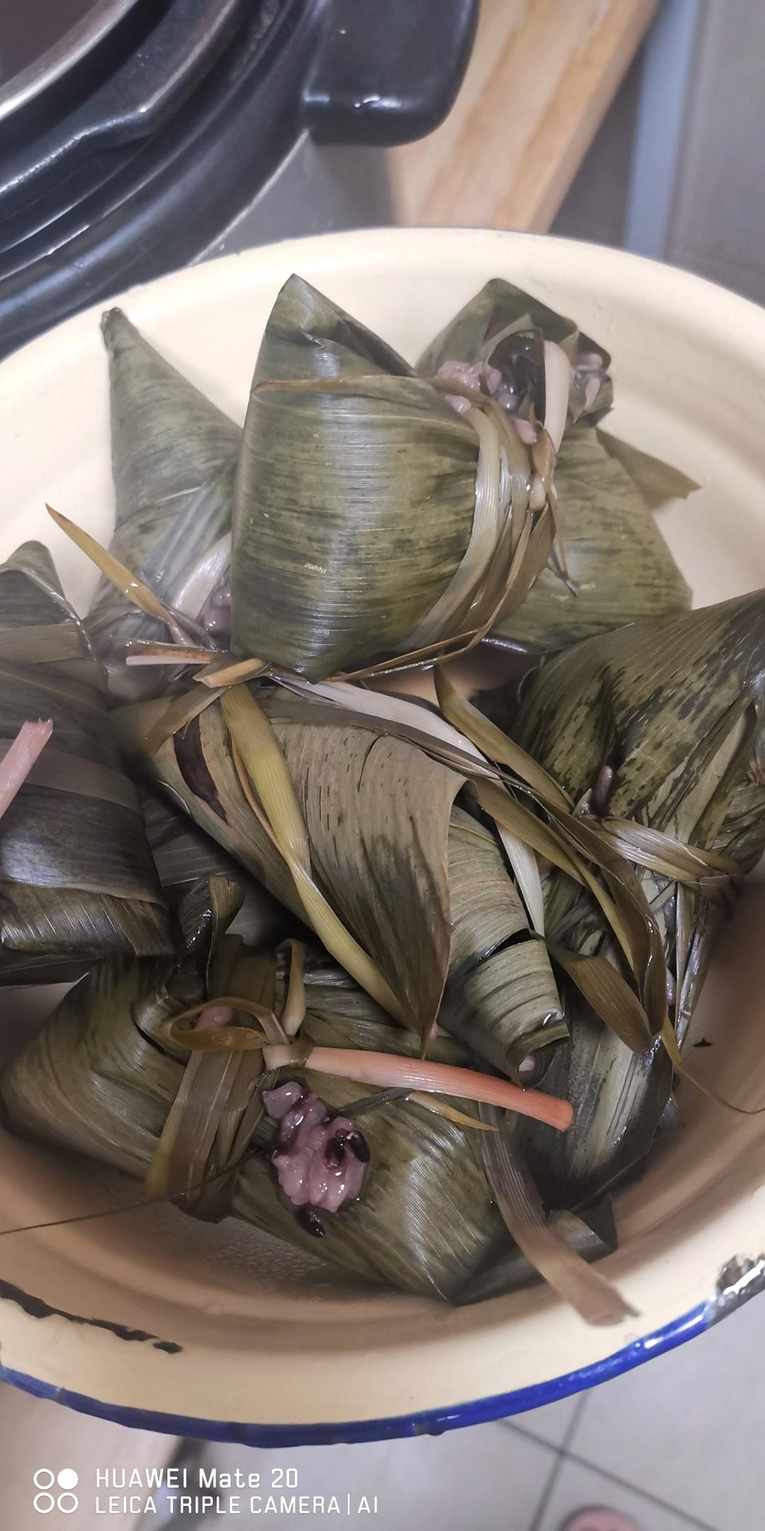 糯米750克,血糯米250克,做了大约20个粽子(因为粽叶不太好,粽子有大有小),因为粽叶用完了,又做了一碗糯米饭。