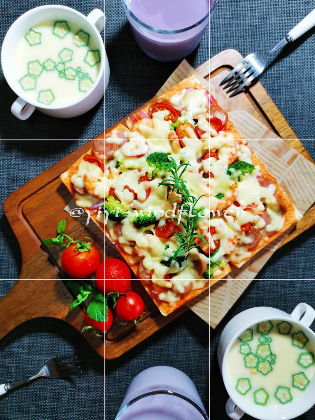 💌虾仁烤肠吐司披萨
