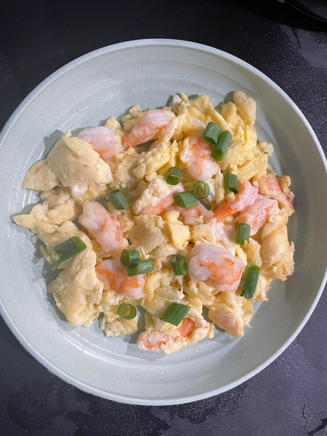 只在蛋液和虾仁上浆时加了点盐,咸淡刚好。要注意多加一些油,蛋液凝固一半就关火。