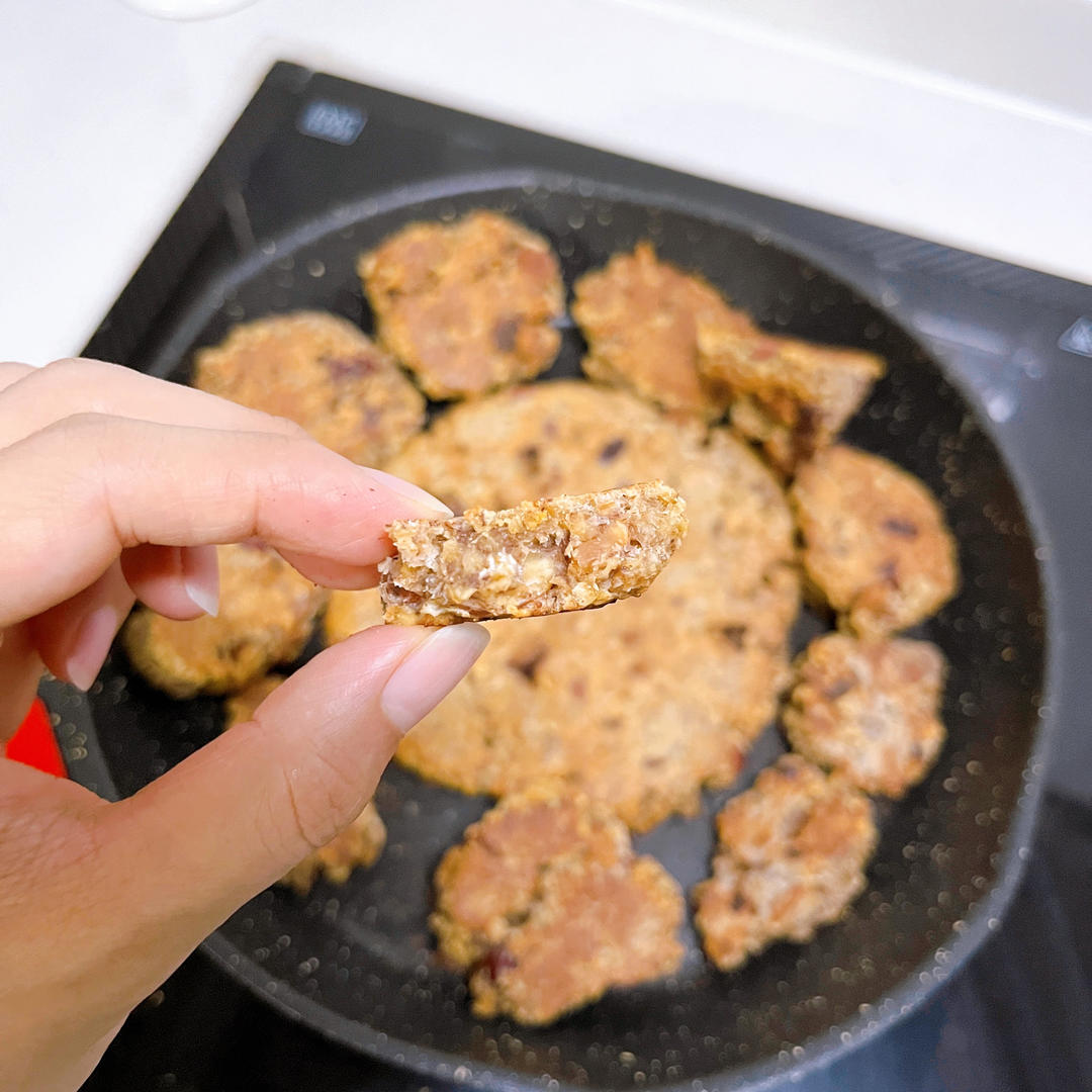 平底鍋版 電飯煲版 加了杏仁和紅棗 口感像軟曲奇 果腹是真的 一兩塊能頂半天