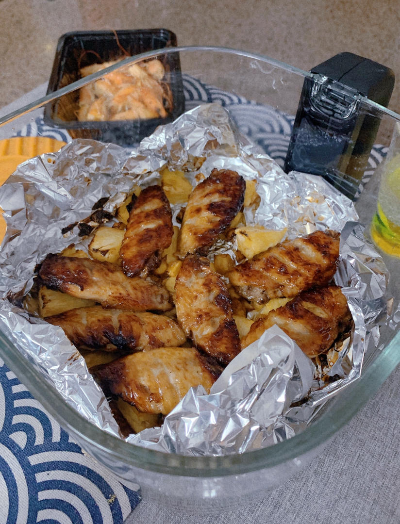 结合了几个菜谱,然后用这个的空气炸锅的方式,相当好吃,外焦里嫩!