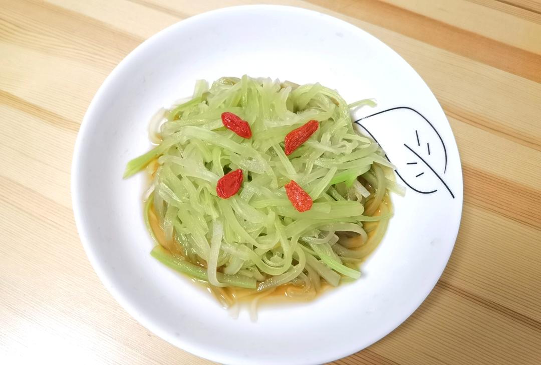 凉拌莴笋丝,在礼海吃的,回家自己试了下,味道有八九成了