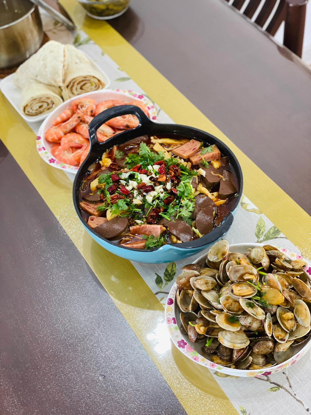 神兽放假了,每天发愁吃什么?今天外甥也来了,给小哥俩安排肉龙、毛血旺、白灼虾、辣炒花蛤