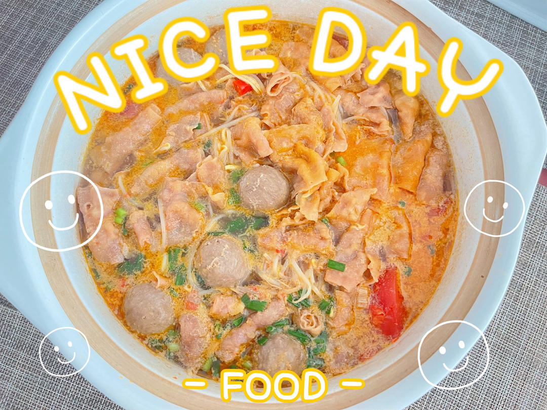 用到了肥牛 干丝 牛肉丸 豆芽 鹌鹑蛋 酸汤肥牛底料 好香 能卖到89一份 哈哈哈还