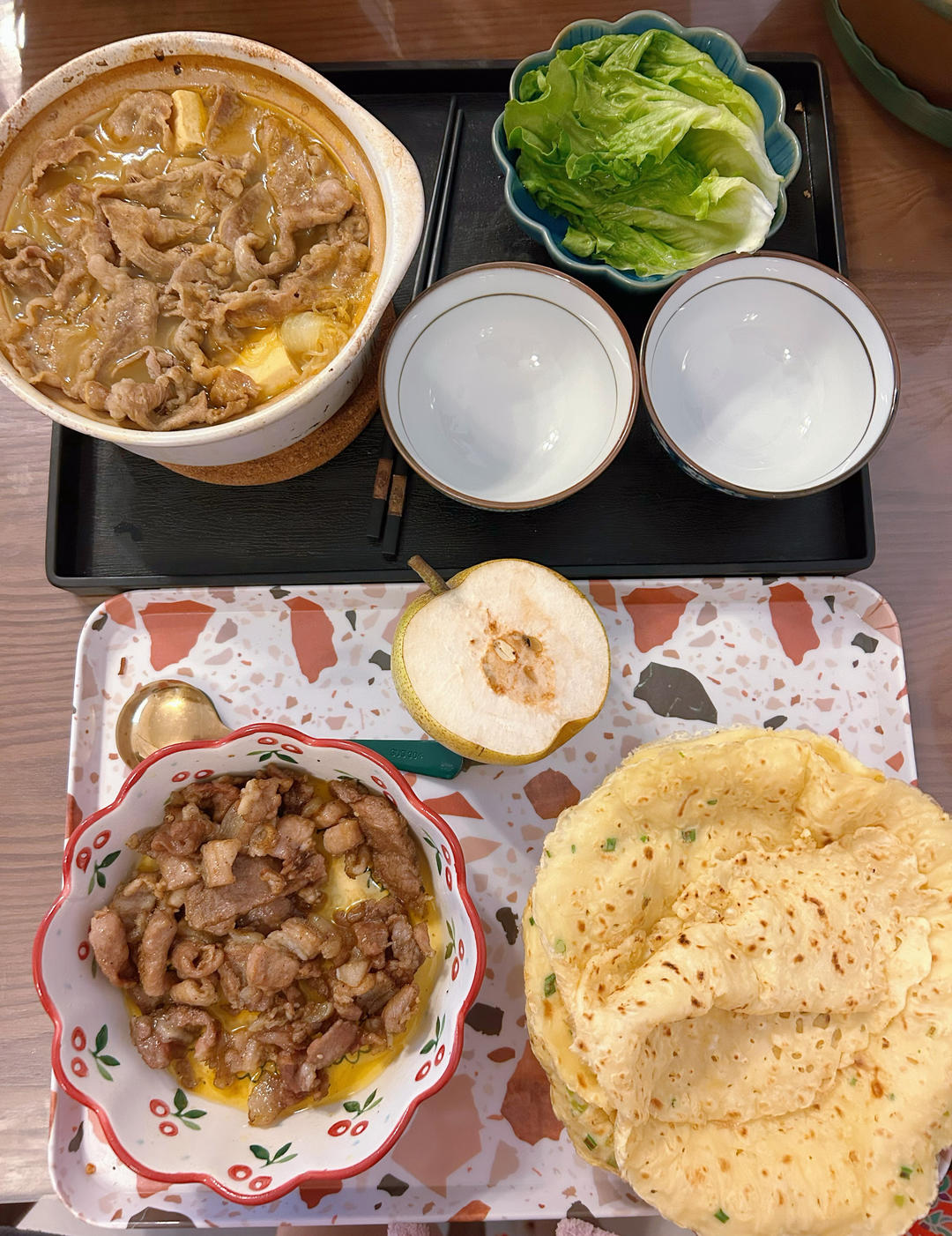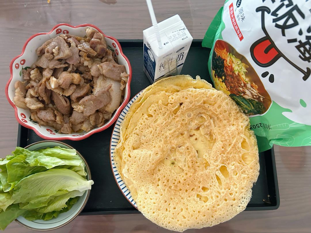 鸡蛋饼+金汤肥牛+烤五花肉