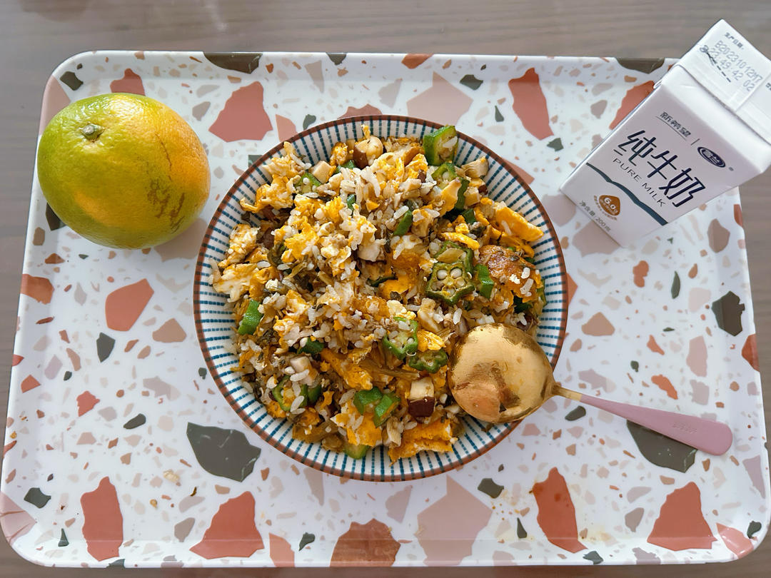 什锦炒饭+牛奶+橙子🍊