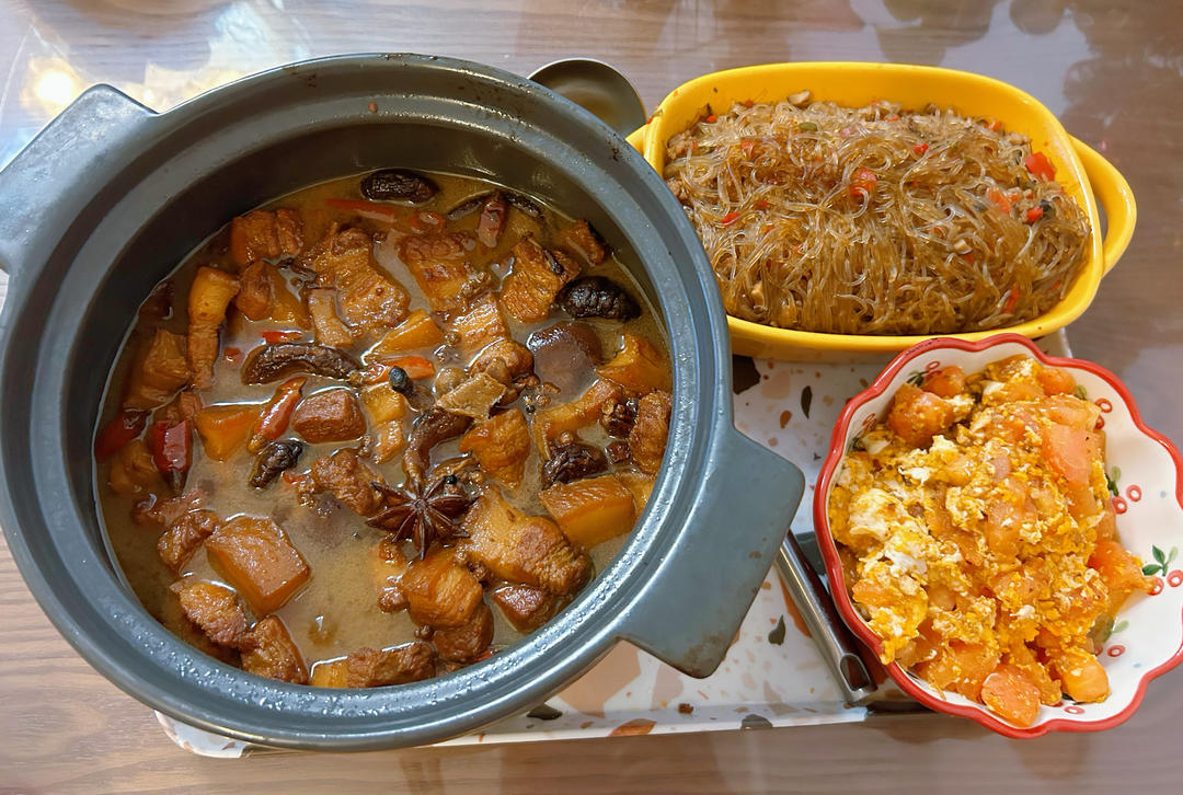 红烧肉+蚂蚁上树+番茄炒鸡蛋