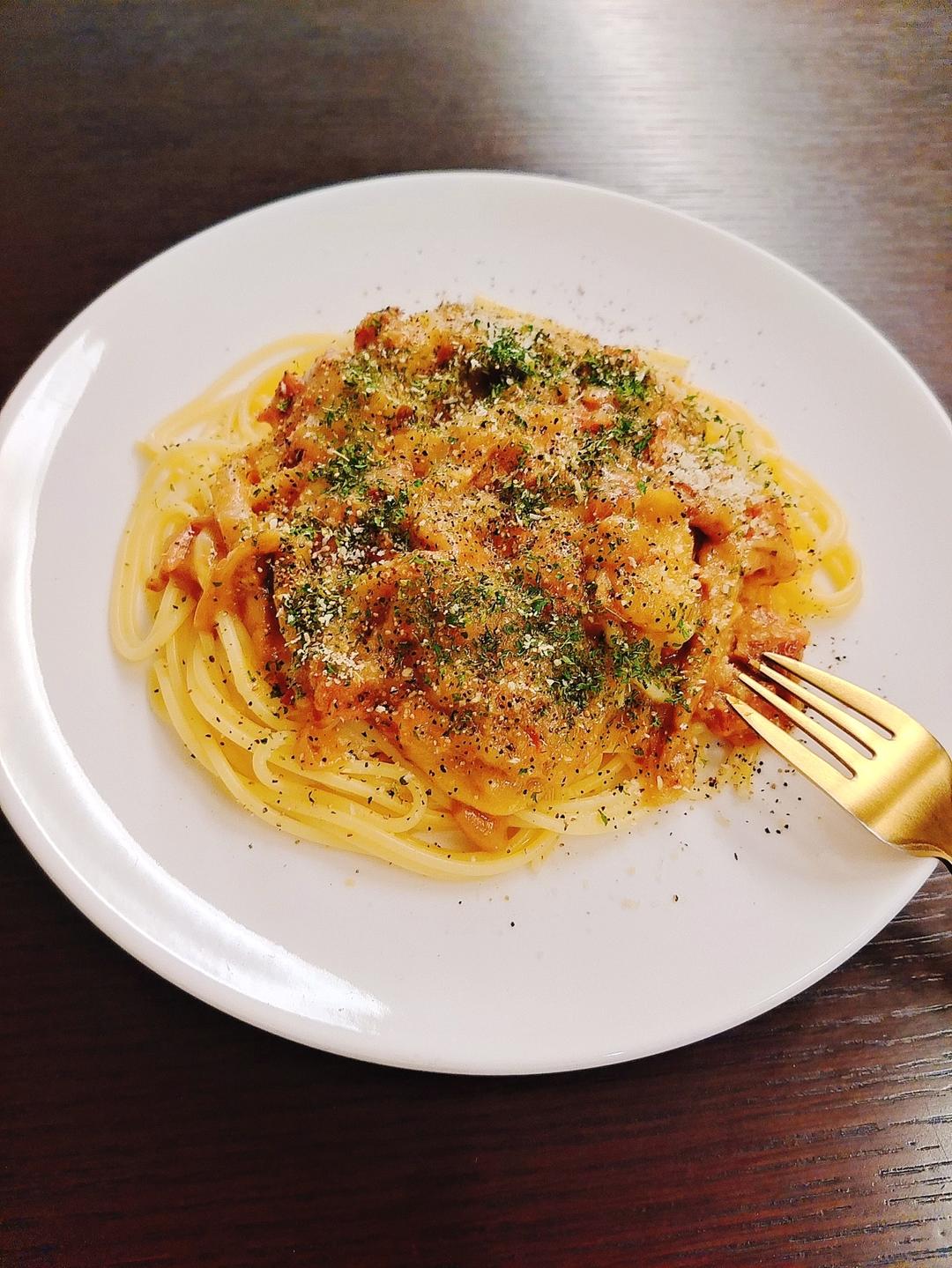 奶油培根🥓配白葡萄酒提香意面