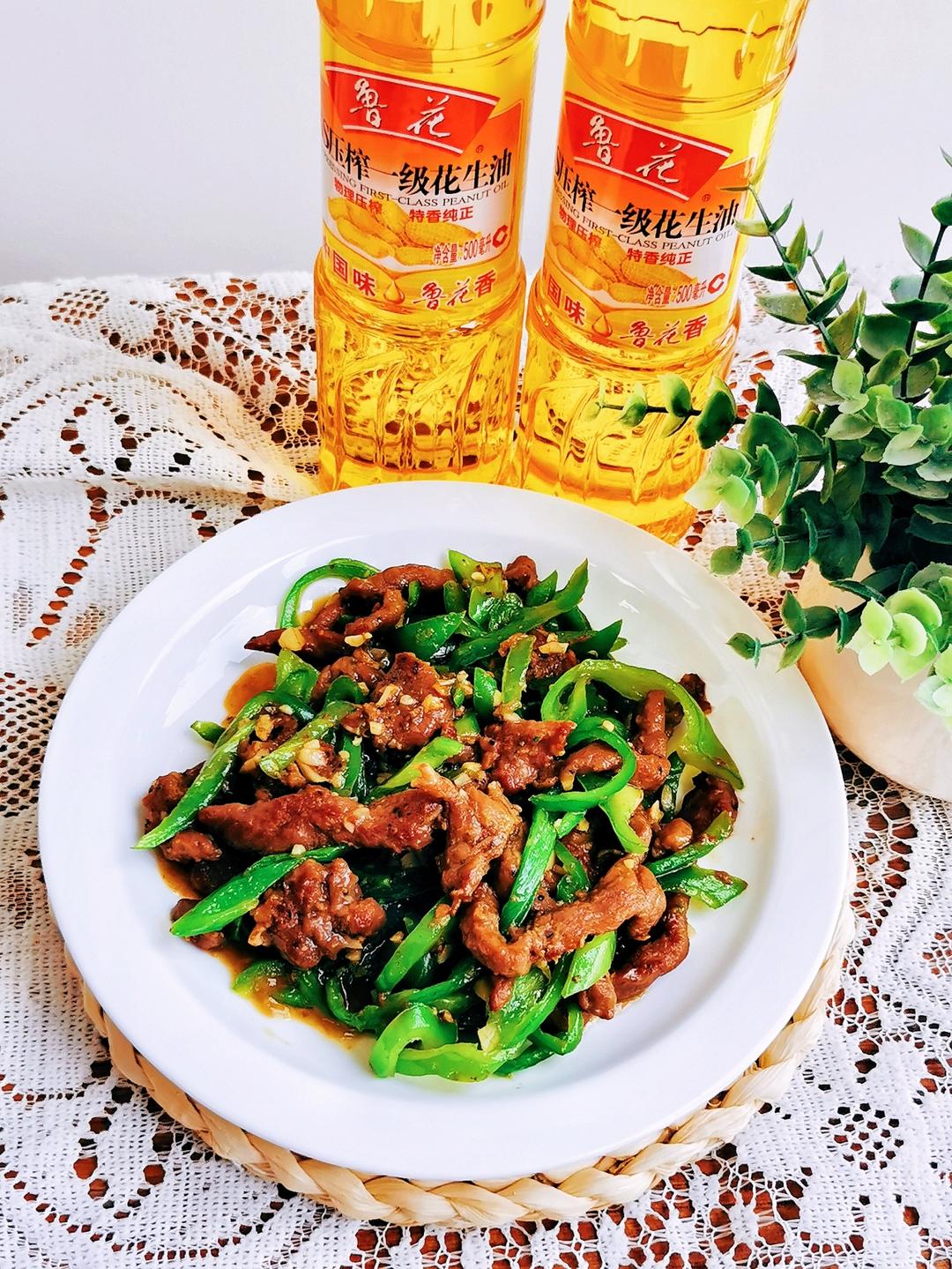 在京东超市买的鲁花花生油,成就一盘美味的青椒炒牛柳~